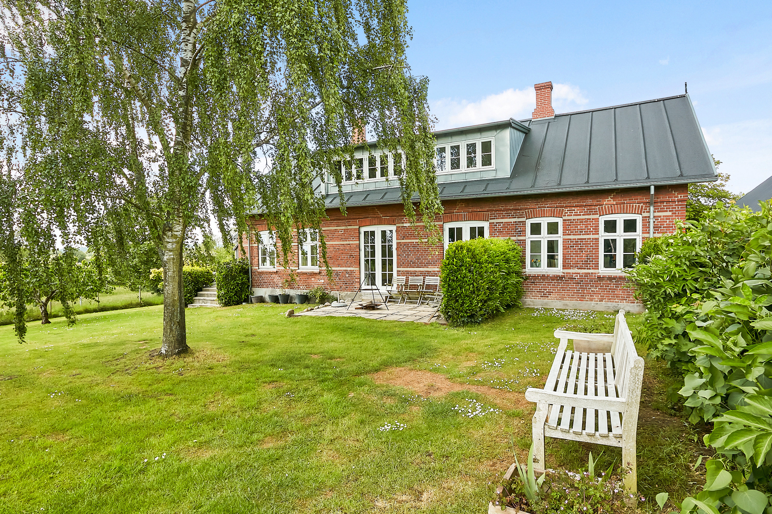 INDRETNING: Når du træder ind af døren, kommer du ind i den flotte entré med højt til loftet og trappeopgang til første sal. Fra entreen er der adgang til det store håndbyggede snedker køkken Kvänum. Køkkenet er placeret i åben forbindelse med det store alrum/spisestue. Herfra kan den flotte udsigt nydes over grunden. På grunden er der mange muligheder, og måske har du en drøm om at have heste eller andre dyr gående? I baggrunden optræder havet som en smuk malerisk baggrund. Fra alrummet er der også adgang til viktualierum, samt husets bryggers, og det første badeværelse. Går du videre fra spisestuen gennem de franske døre, kommer du ind i den store stue med masser af lys og store vinduespartier, med udgang til den lækre sydvestvendte terrasse. Mellemgangen mellem hovedhuset og den tilbyggede længe fra 2015, er indrettet som en orangeri -lignende gang, hvorfra der også er plads til ophold, og til at nyde den flotte udsigt. I den tilbyggende længe kommer man først ind i den fantastiske pejsestue/gildesal - her er højt til loftet, en flot åben pejs, og adgang til vinrum. I den øvrige del af denne længe findes hall, hvor der er lavet trappe til 1. salen, som der er mulighed for at udnytte. Derudover er der et badeværelse, et ekstra køkken, et stort værelse, og et mindre værelse. 1. salen i hoved huset indeholder repos, stort soveværelse med fransk altan, og masser af skabsplads. Der er 2 store værelser, et godt depot rum samt 2 badeværelser hvoraf det ene er med badekar.