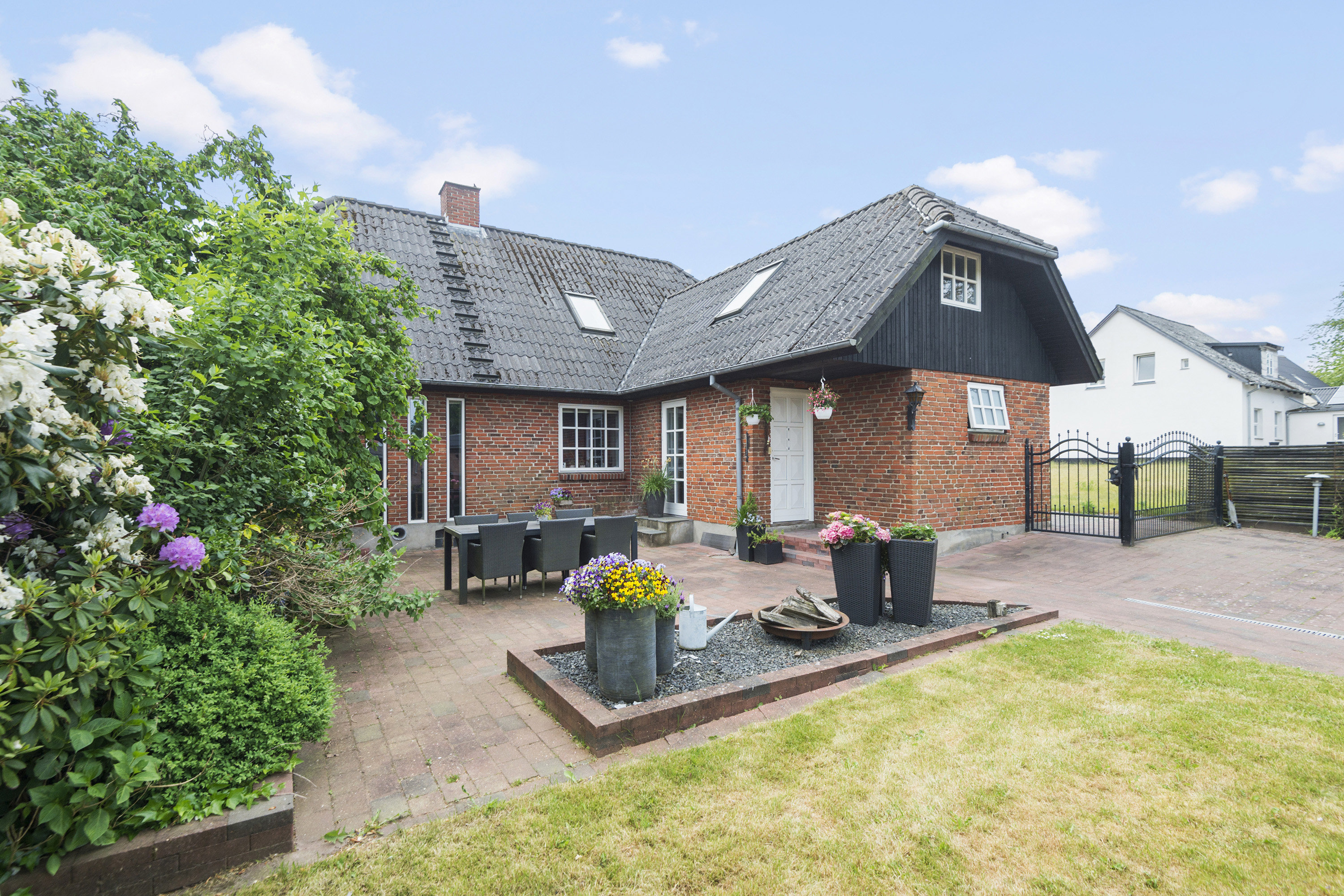 Huset byder velkommen med en flot, klassisk rødstensfacade og en hyggelig, lukket have med flisebelagt terrasse, grønne bede og god plads til både afslapning og leg. Her er plads til at nyde solen i rolige rammer, mens den centrale beliggenhed giver nem adgang til både bymidte, indkøb og daglige gøremål.