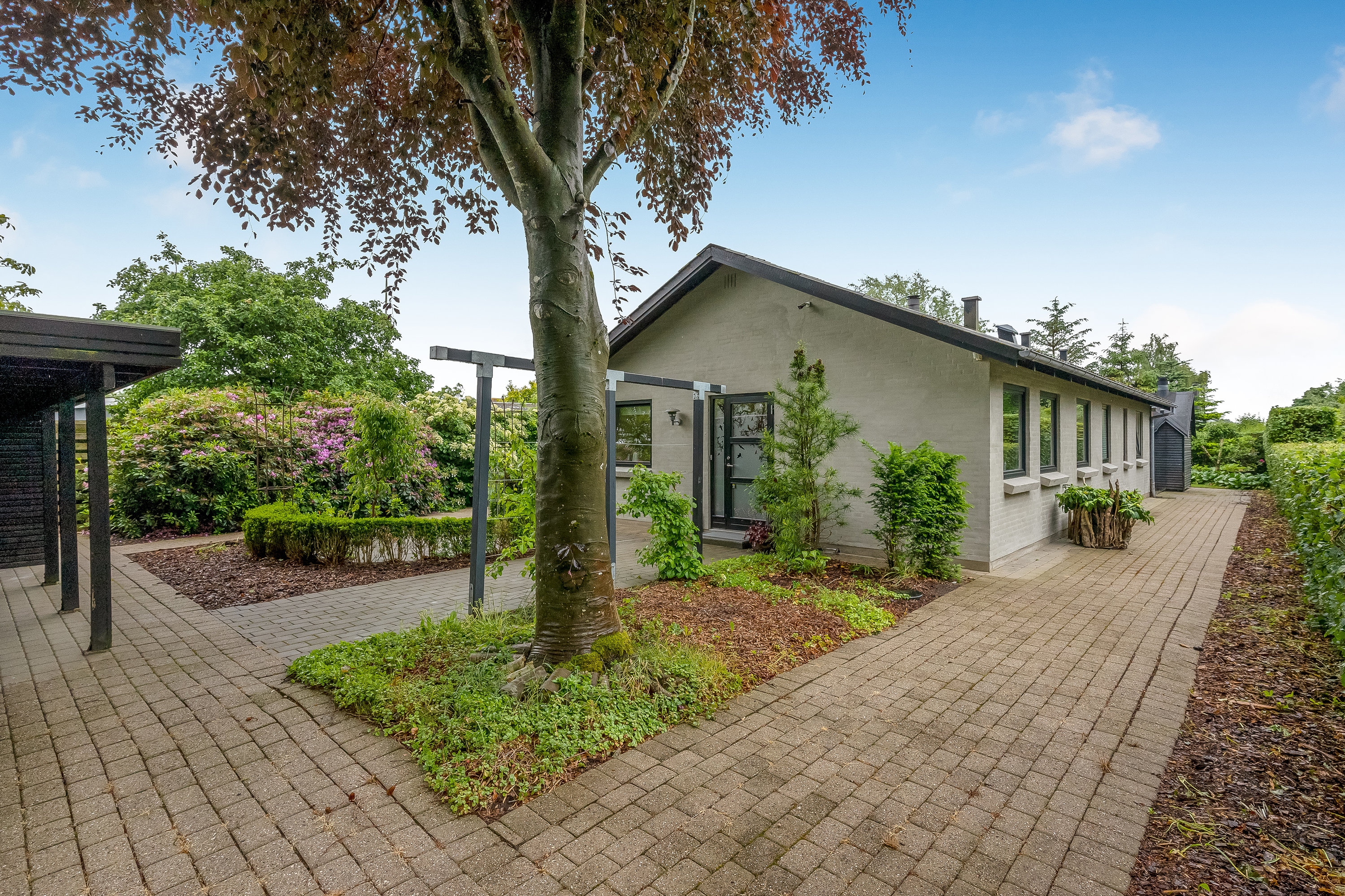 Velkommen til denne skønne og velholdte villa, som ligger fredeligt og grønt i et attraktivt og roligt område. Ejendommen er opført i 1983 og fremstår moderne og velplejet med mange fine detaljer både ude og inde. Med et boligareal på 104 kvadratmeter og en dejlig grund på hele 697 kvadratmeter får du her en bolig med god plads og en have, der indbyder til udeliv og afslapning. Boligen byder på et lyst og velindrettet køkken med god bordplads og masser af skabsplads. Her er det let at forestille sig hyggelige stunder med madlavning og samvær. Det tilstødende alrum og opholdsrum er ligeledes lyst og rart at opholde sig i, og det store vinduesparti trækker dagslyset smukt ind i boligen. Stuen har en skøn brændeovn på drejesokkel så du kan nyde flammerne fra flere vinkler. Soveværelset er indrettet med udgang til haven, hvilket giver en fornemmelse af ro og nærhed til naturen. Det ekstra værelse kan anvendes som kontor, gæsteværelse eller børneværelse afhængigt af behov. Haven er et kapitel for sig. Den er smukt anlagt med frodige bede, grønne plæner og flere hyggelige opholdsrum – blandt andet en dejlig terrasse, hvor man kan nyde morgenkaffen eller lange sommeraftener. Et ekstra plus er det charmerende anneks, som også kan bruges til svedhytte med loft til kip og brændeovn, som kan bruges som gæstehus, atelier eller teenageafdeling. Der er ligeledes en god carport og tilhørende skur, som sikrer praktisk opbevaring og nem adgang til bilen i alt slags vejr. Boligen fremstår generelt i flot stand og er klar til indflytning. Her får du en harmonisk helhed af hjemlig hygge, funktionalitet og rolige omgivelser – et ideelt valg for både par, singler og små familier, der ønsker en nem og dejlig hverdag tæt på både natur og by.