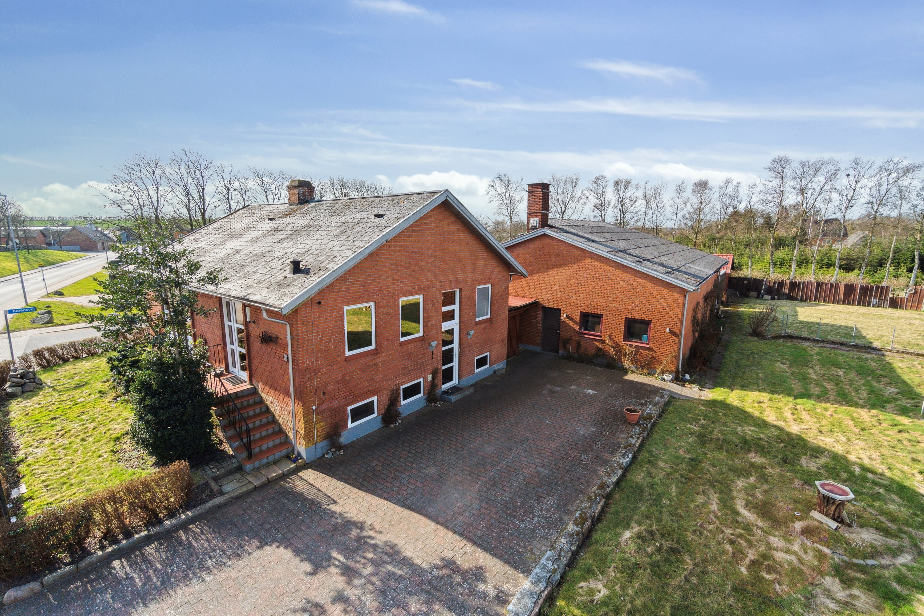 Generelt trænger ejendommens udvendige arealer og facader til modernisering, men omvendt har du her mulighed for at få en billig ejendom med masser af plads.