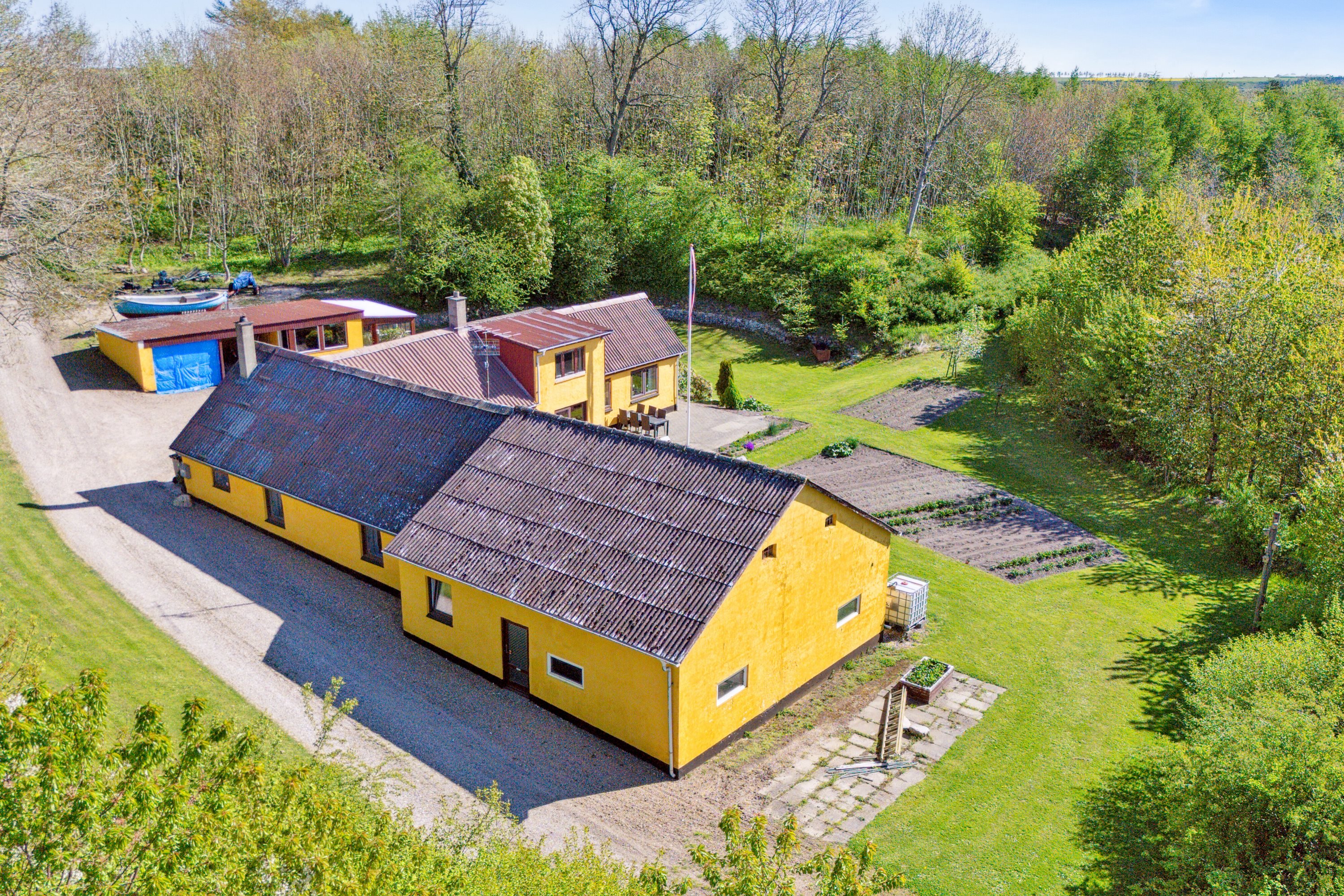 Ejendommen ligger i kuperet landskab og er omkranset af træer og beplantning. Om sommeren lukker beplantningen helt tæt, og danner en hyggelig oase om ejendommen. Her kan du således være helt dig selv.