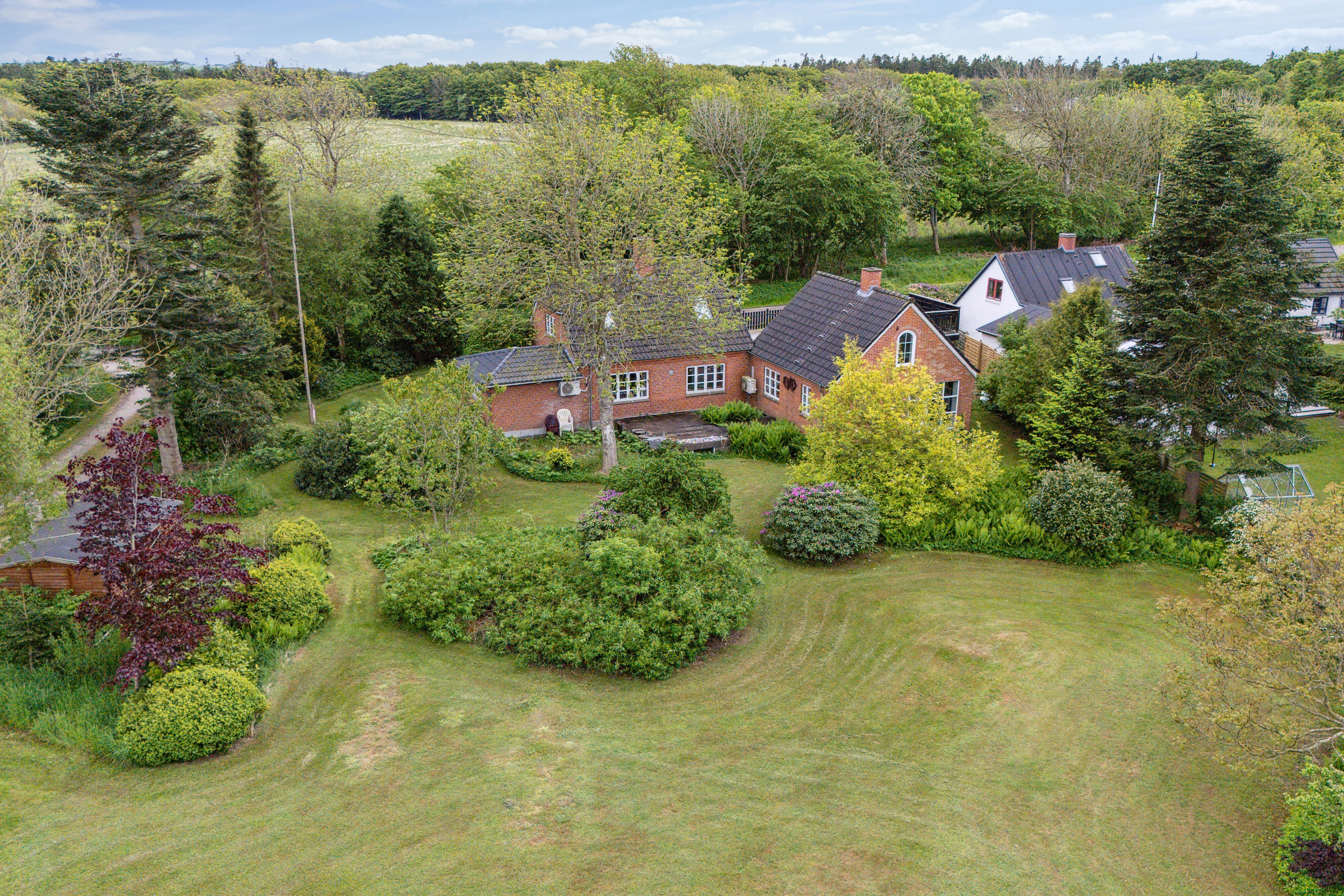 Beliggende på en fantastisk grund med skønne arealer og et væld af træer og buske.