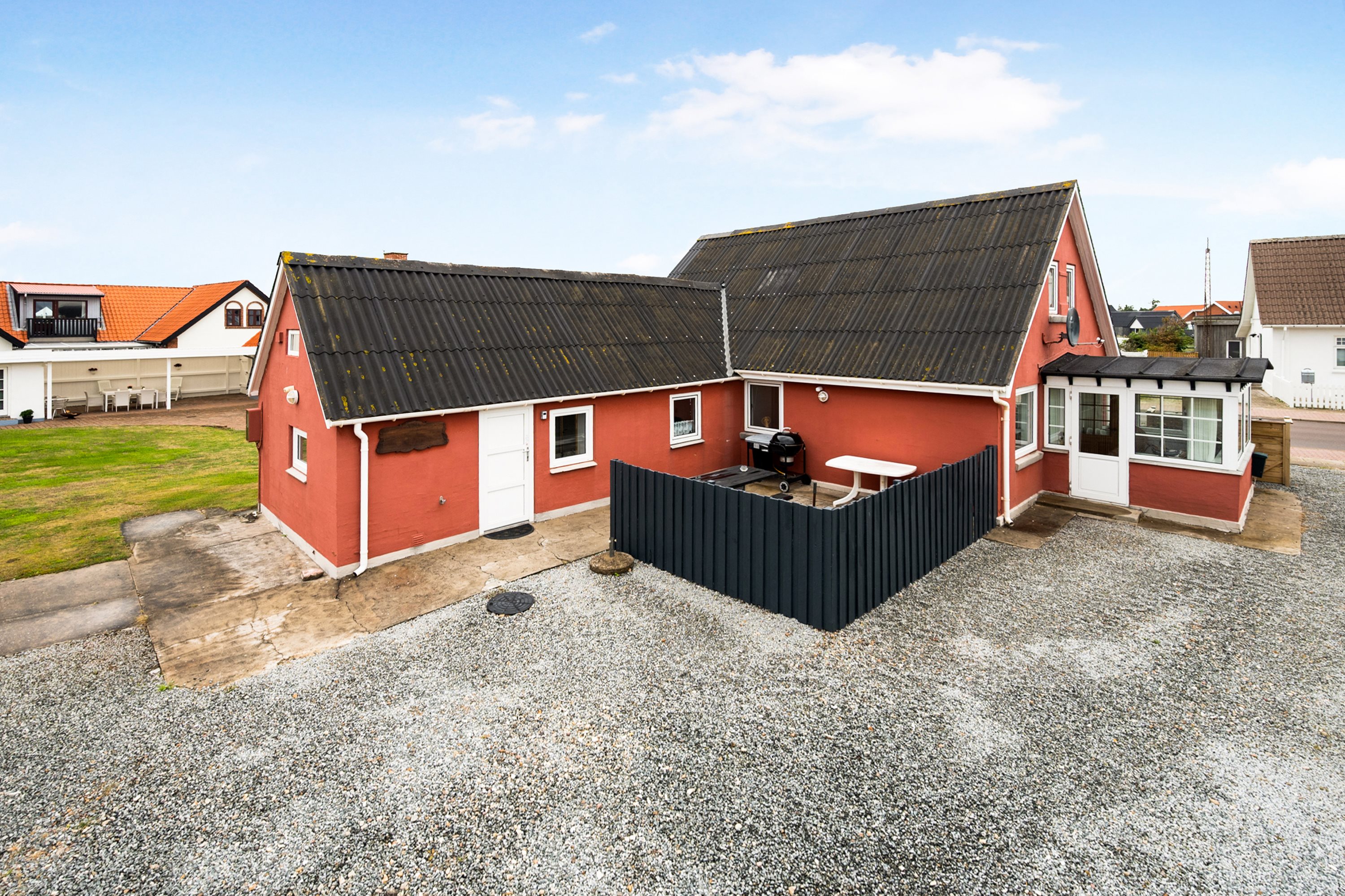 Den originale del, som oprindeligt har været bolig er idag indrettet med flere gode stuer og tagetagen med tre gode værelser.