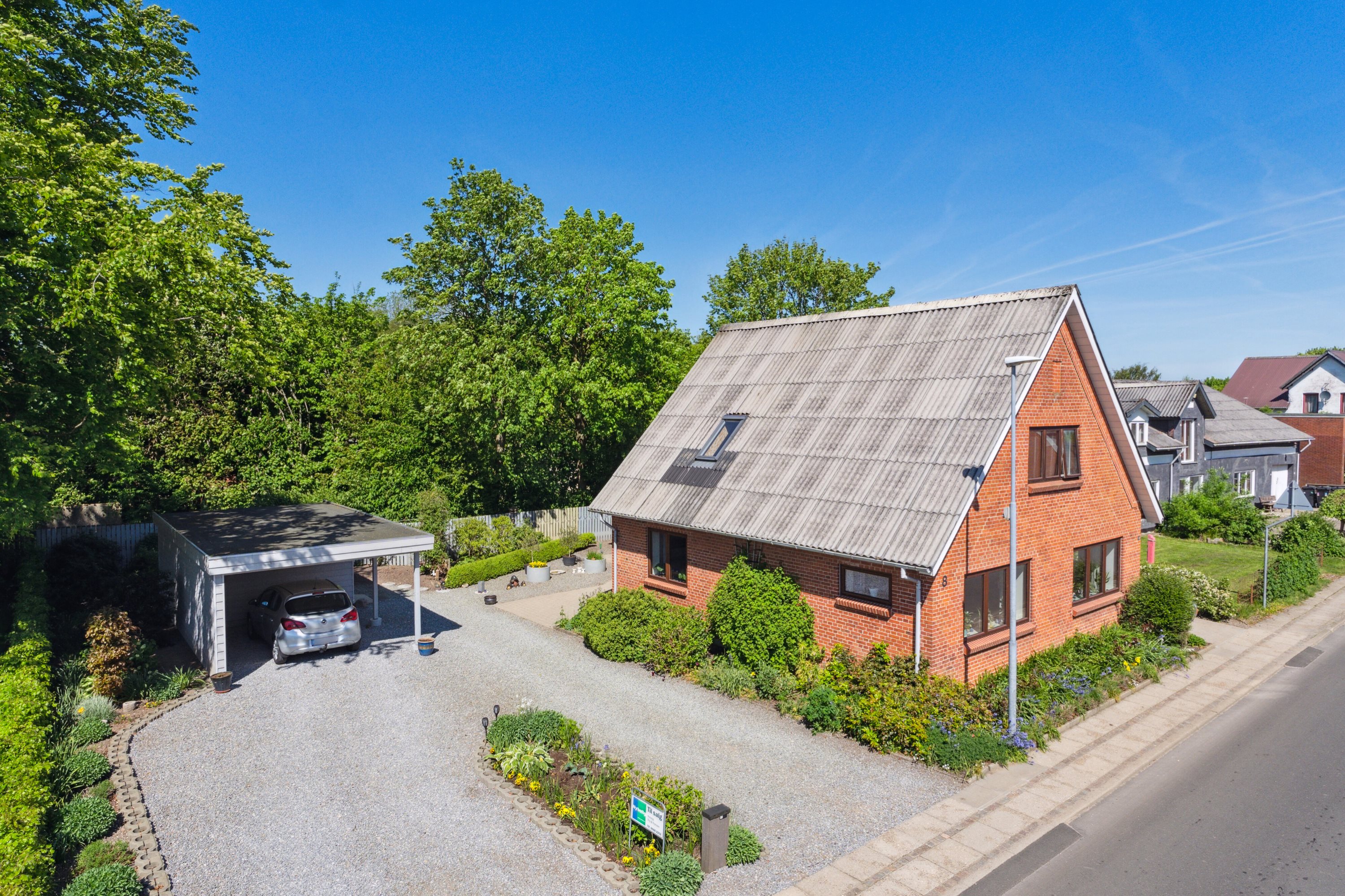 Der er endvidere en fantastisk fin carport med integreret godt hobby-/depotrum.
