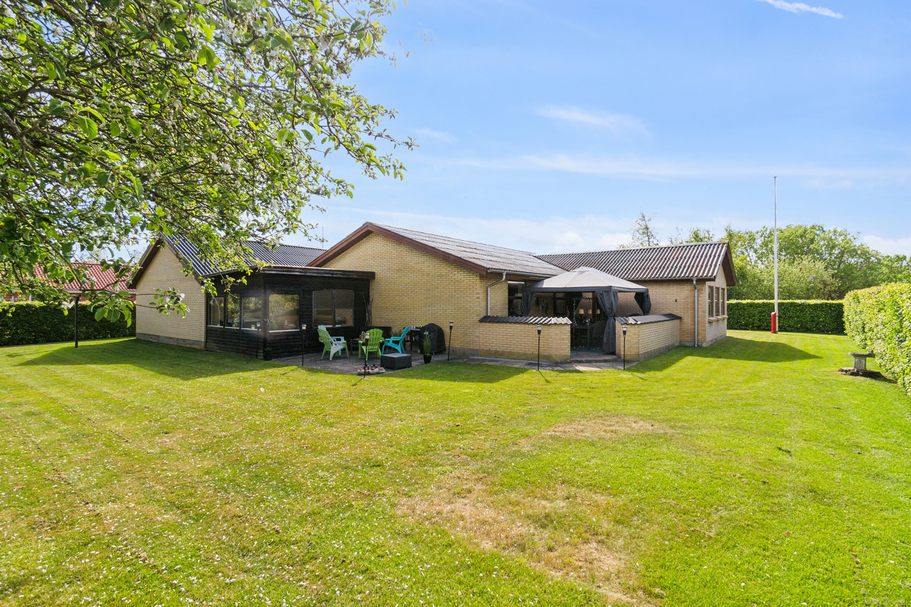 Huset er indrettet med: Vindfang med lyse klinker. Gæstetoilet. Fordelingsareal med lyse klinker med gulvvarme samt bord- og skabsarrangement med vask. Særdeles rummelig opholdsstue med godt lysindfald samt udgang til vestvendt, flisebelagt terrasseanlæg. Rummelig spisekøkken med lyse elementer, diverse hvidevarer og god spiseplads. Badeværelse med lyse klinker med gulvvarme, bord- og skabsarrangement samt bruseniche. Soveværelse med faste skabe. Stort værelse med faste skabe. Værelse med faste skabe. Værelse/kontor.Udhuset/garagen er indrettet med "bryggersrum" med faste skabe samt plads til vaskemaskine og tørretumbler. Skønt og rummeligt hobbyrum med rigtig fine muligheder for hobbyaktiviteter. Der er endvidere en rummelig og dejlig garage med troltektlofter og port med el-hejs.