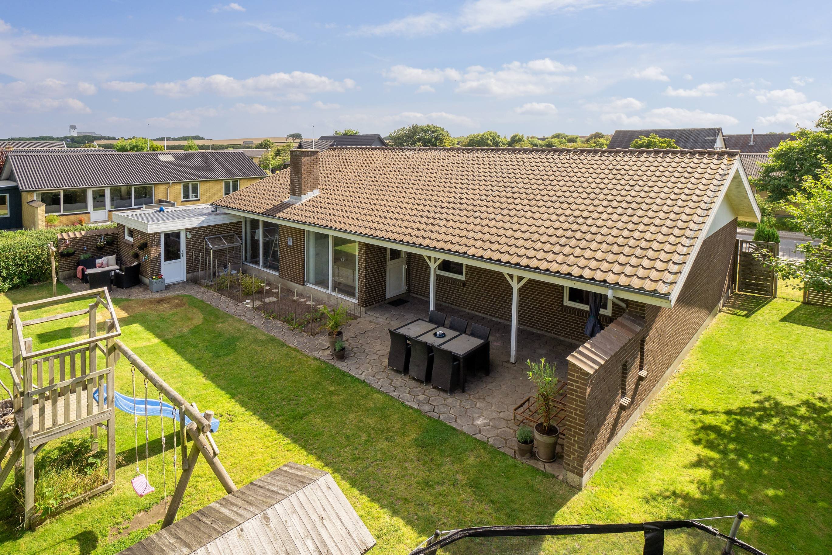 Huset er beliggende på en 711 m² stor grund med en dejlig lukket vestvendt have med overdækket terrasse.