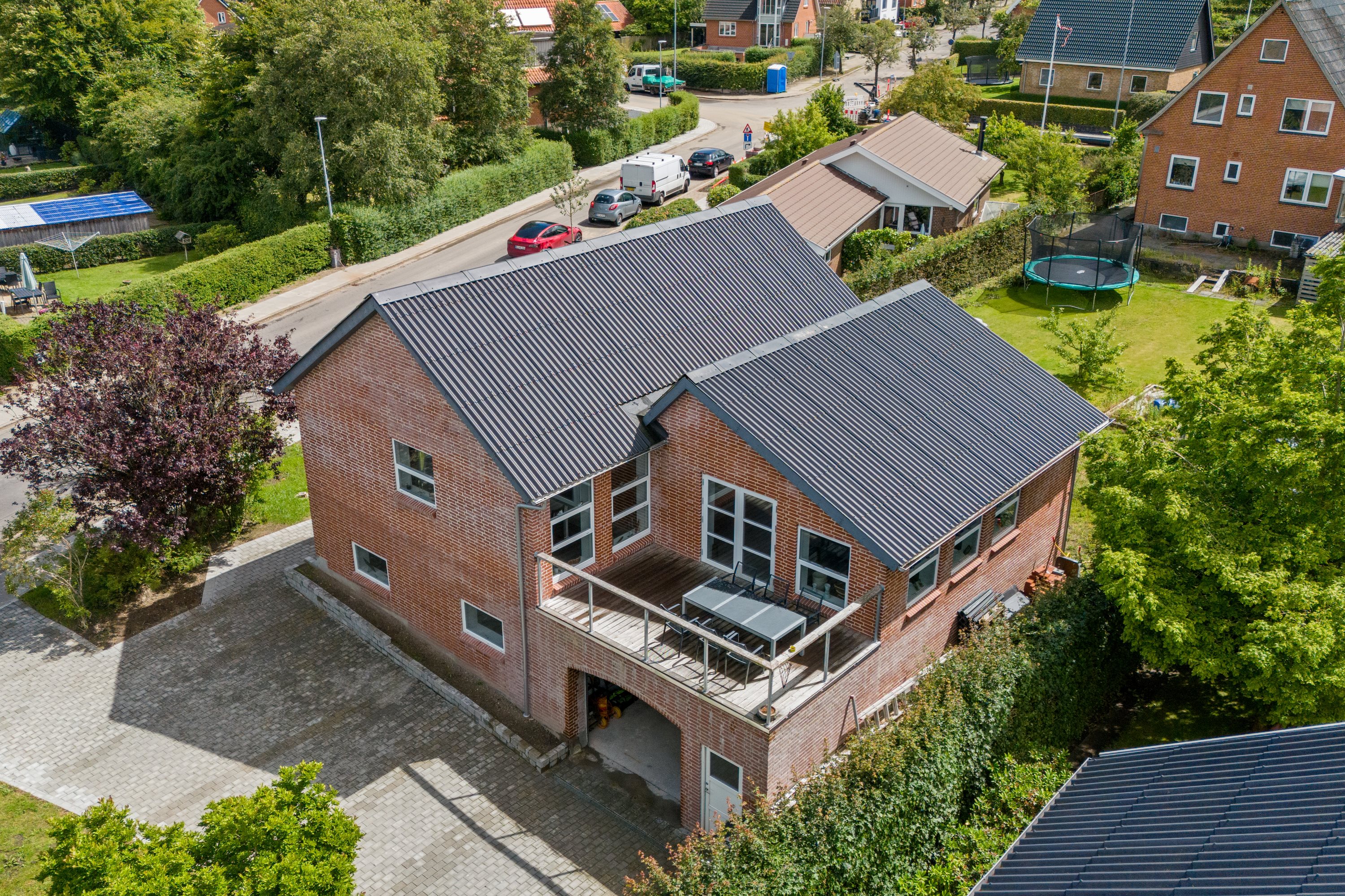 Lad os byde indenfor på en fremvisning af Vestre Alle 23 – en rummelig, gedigen og velopført rødstensvilla fra 2018, der råder over 286 etagemeter, og som har en eftertragtet beliggenhed lige ved midtbyen. Det her er kort sagt ejendommen for jer, der ønsker god plads både ude og inde, og som samtidig ønsker en hverdag centralt i Skive. Villaen har en god placering, der er rolig og central på en og samme tid, og som allerede nævnt er der tale om en nyere ejendom, hvilket ses tydeligt både inde og ude. Hjemmet lever således op til moderne standarder, og der venter jer flere attraktive detaljer såsom en stilren indretning, et flot lysindfald og loft til kip. Grunden tæller 713 kvm og står bl.a. med fliseindkørsel og -belægning, integreret garage og en dejlig have med nem beplantning og en stor, hævet terrasse med masser af sol. Huset rummer en høj kælder, der er fri af terræn til den ene side, samt en hævet stueetage med et flot lysindfald. I stueetagen byder planløsningen på en entré, et regulært værelse, et gæstetoilet og et imponerende opholdsrum med mange gode kvadratmeter, hvor køkken, spisestue og dagligstue ligger ud i ét med direkte udgang til en hyggelig, hævet terrasse med eftermiddags- og aftensol. Der er tilmed mulighed for at etablere flere værelser, hvis I ønsker det. Villaen afrundes med den lyse og højloftede kælder med en stor, integreret garage, bryggers, badeværelse med både brus og badekar samt to gode rum, der står i boligstandard. Ejendommen ligger fredeligt i et villakvarter tæt på Skive Midtby og lige ved siden af dejlige, grønne områder, der indbyder til gå- og løbeture. I gåafstand fra hoveddøren har I både Netto og Rema 1000, og det samme gør sig gældende for midtbyen, hvor teatret, biblioteket og gågaden med butikker og fornøjelser til folk i alle aldre venter. Skive Stadion og Arenaen fungerer som to populære trækplastre, og som prikken over i’et er der kort afstand til skole, daginstitutioner og flere fritidsaktiviteter.
