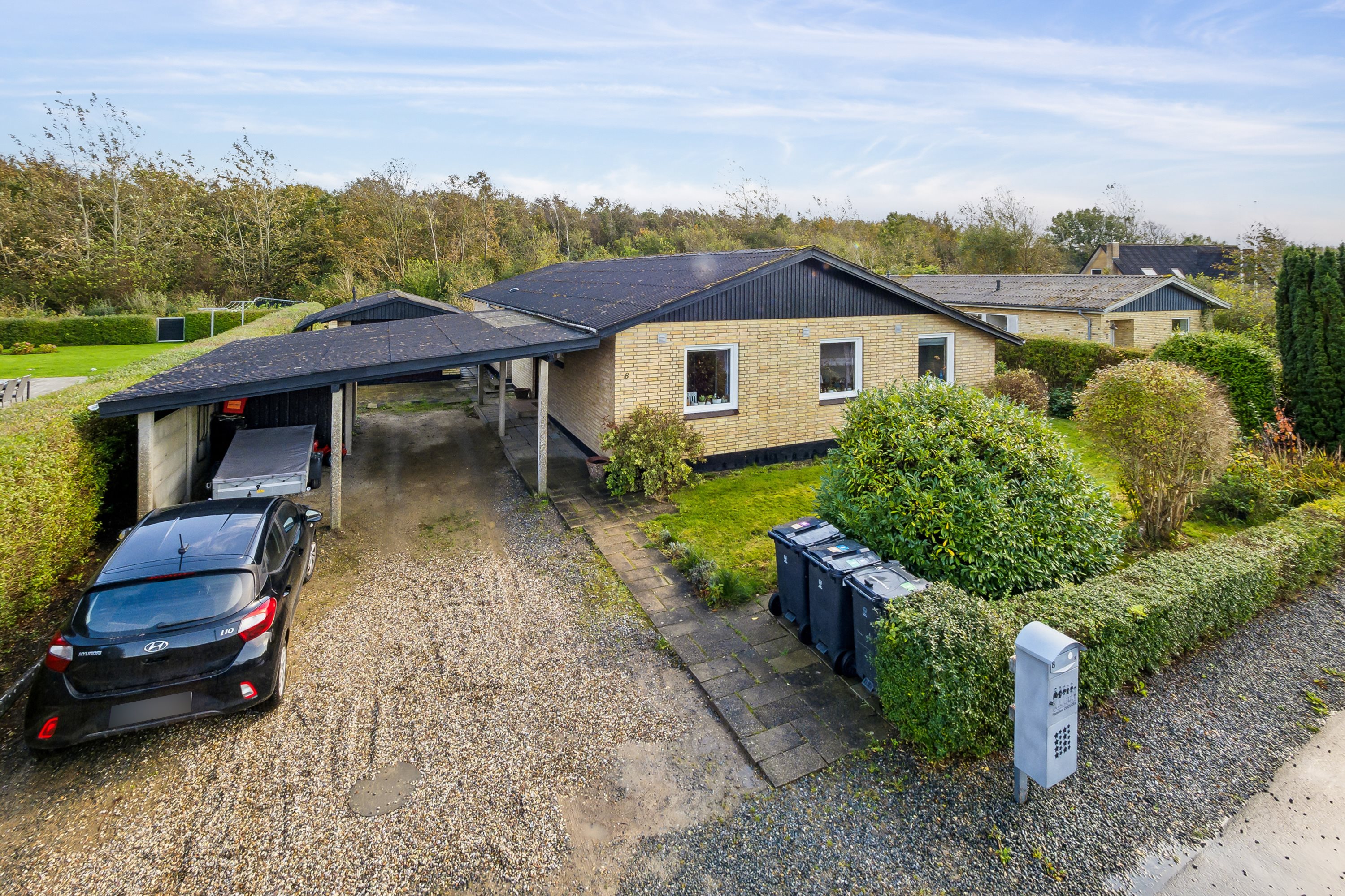 Her får du 172 m2 bolig på et plan og 81 m2 fordelt på carport og udhus. Bagerst i carporten er der et skur til diverse haveredskaber og udhuset benyttes som vaskehus med vaskemaskine og bryggers. Med et busstoppested rundt om hjørnet, er det nemt for både unge og gamle at tage sig ind til byen påblot 10-15 minutter.