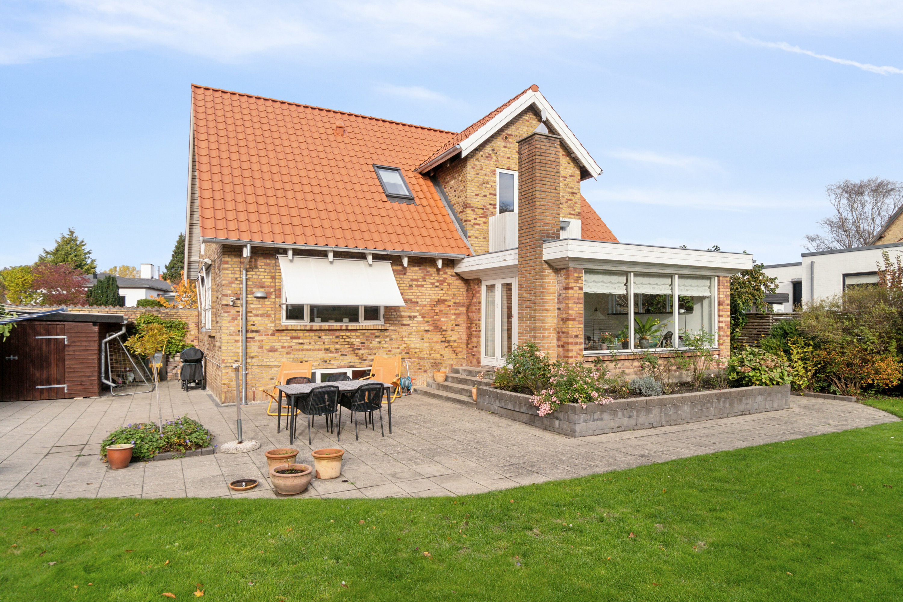 Villaen emmer af charme med sine changerende murstensfacader, og det grundige vedligehold er også til at få øje på. Huset er nemlig udstyret med et nyt tag fra 2025 samt nyere termovinduer. Den sydvendte placering og afskærmningen fra vejen bidrager til følelsen af privatliv i haven, hvor der er god plads til sommerens udfoldelser.