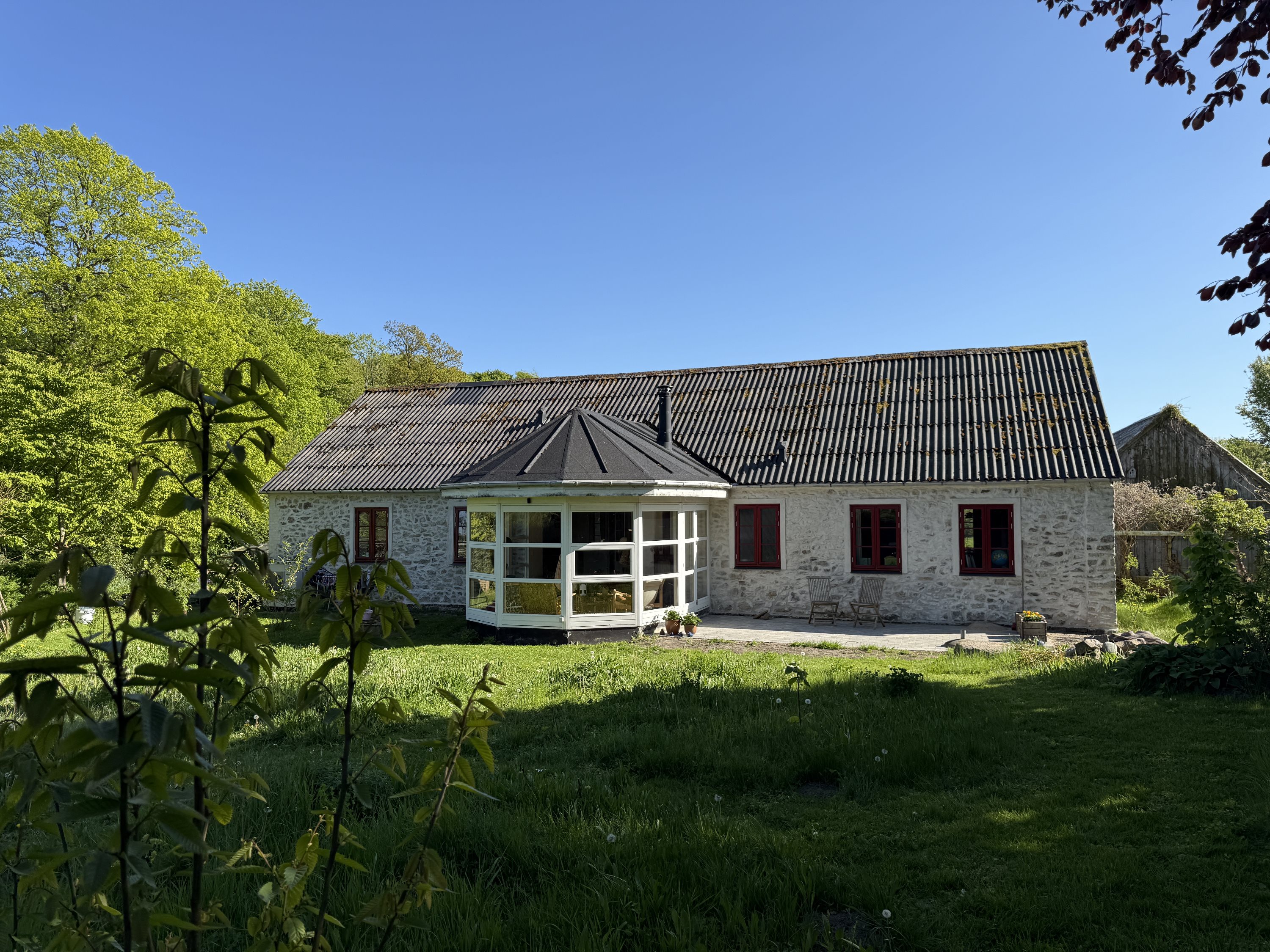 Der er lavet naturpleje på engene omkring ejendommen, og cirka en hektar af den store naboskov med en rislende bæk er jeres. På grunden er der også en lille sø med løvfrøer, mens alverdens fugle og sommerfugle er med til at give stedet sin helt særlige charme. Alt dette toppes med den sydvendte gårdsplads, hvor I kan sidde svalt i skygge under det store, gamle valnøddetræ. Her er også en hønsegård og en dejlig køkkenhave, hvor I kan dyrke lige det, I lyster.