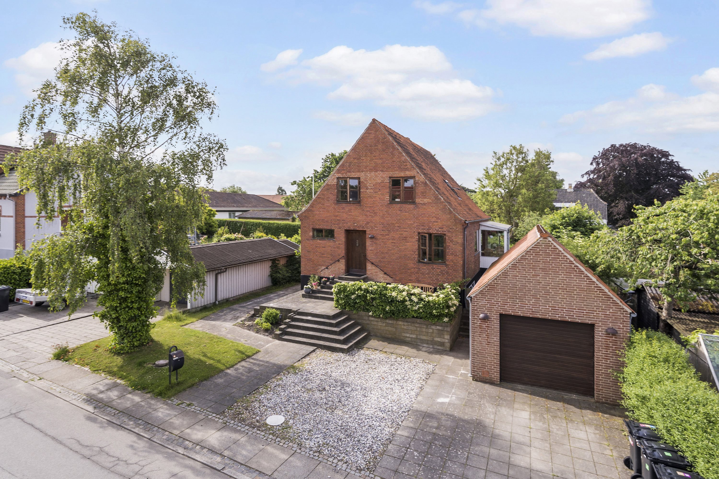 Den rødmurede villa er et solidt bygget eksemplar fra 1939, som rummer 138 boligkvadratmeter foruden de 78 kvadratmeter i kælderen. Boligen er i store træk fin og funktionel, og med en let opdatering, et nyt køkken og lidt maling på væggene, kan den hurtigt fremstå helt indflytningsklar. Kælderen skal der også gøres lidt ved, inden den kan tages i brug, men til gengæld er den høj, lys og med gode disponible rum.