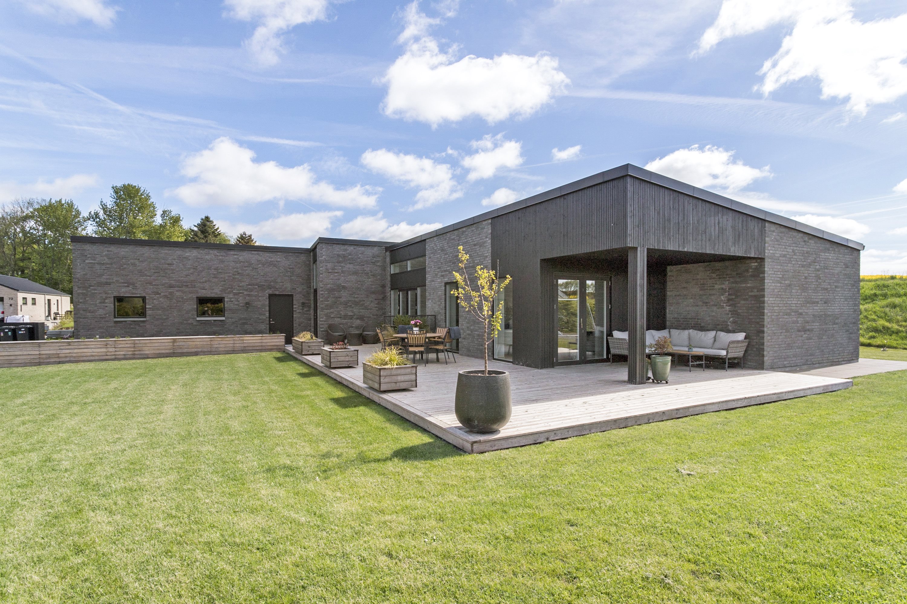 Direkte ud til rapsgule marker, grønne volde og stier ligger denne nyere villa, der disponerer over hele 203 kvadratmeter foruden en stor, integreret dobbeltgarage. Boligen er perfekt til en stor, moderne børnefamilie, som samtidig ønsker rigeligt med udenomsplads og skønne terrassearealer, der blandt andet byder på en XL-træterrasse med et lækkert, overdækket loungeområde.