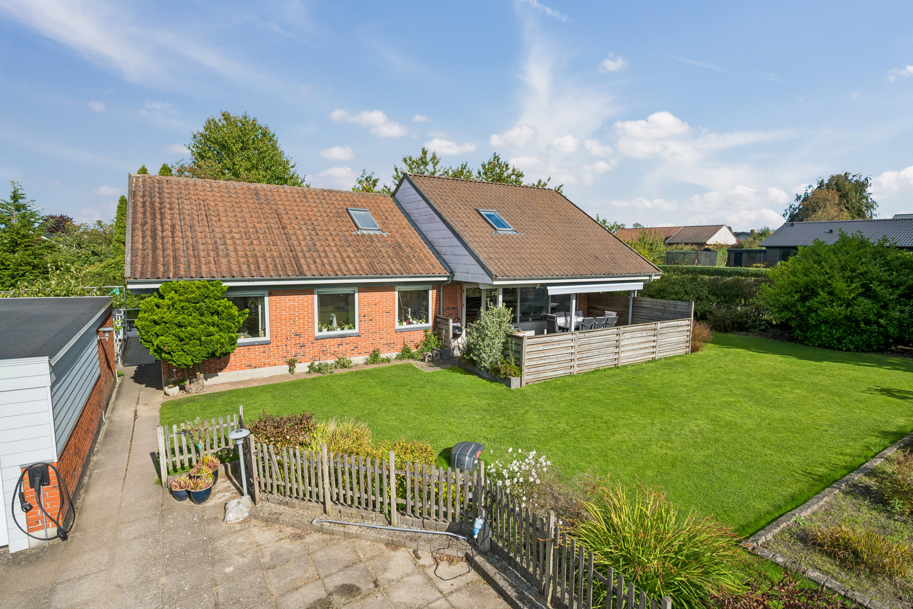 Huset blev opført i 1973 og er skræddersyet til familielivet i alle sine faser med gode værelser på begge etager samt nogle dejlige opholdsrum i stueplan. I får nemlig glæde af en stor vinkelstue, der ligger i åben forbindelse med et hyggeligt køkken-alrum, og rummene smelter ikke bare sammen med hinanden, men også med den sydvendte terrasse udenfor. Tre værelser ligger herudover belejligt sammen med badeværelse og bryggers i stueetagens anden ende, hvortil yderligere to værelser og et uudnyttet loftsrum venter ovenpå – en genial detalje til familien med teenagere og større børn, der vil sætte pris på separate værelsesafdelinger.