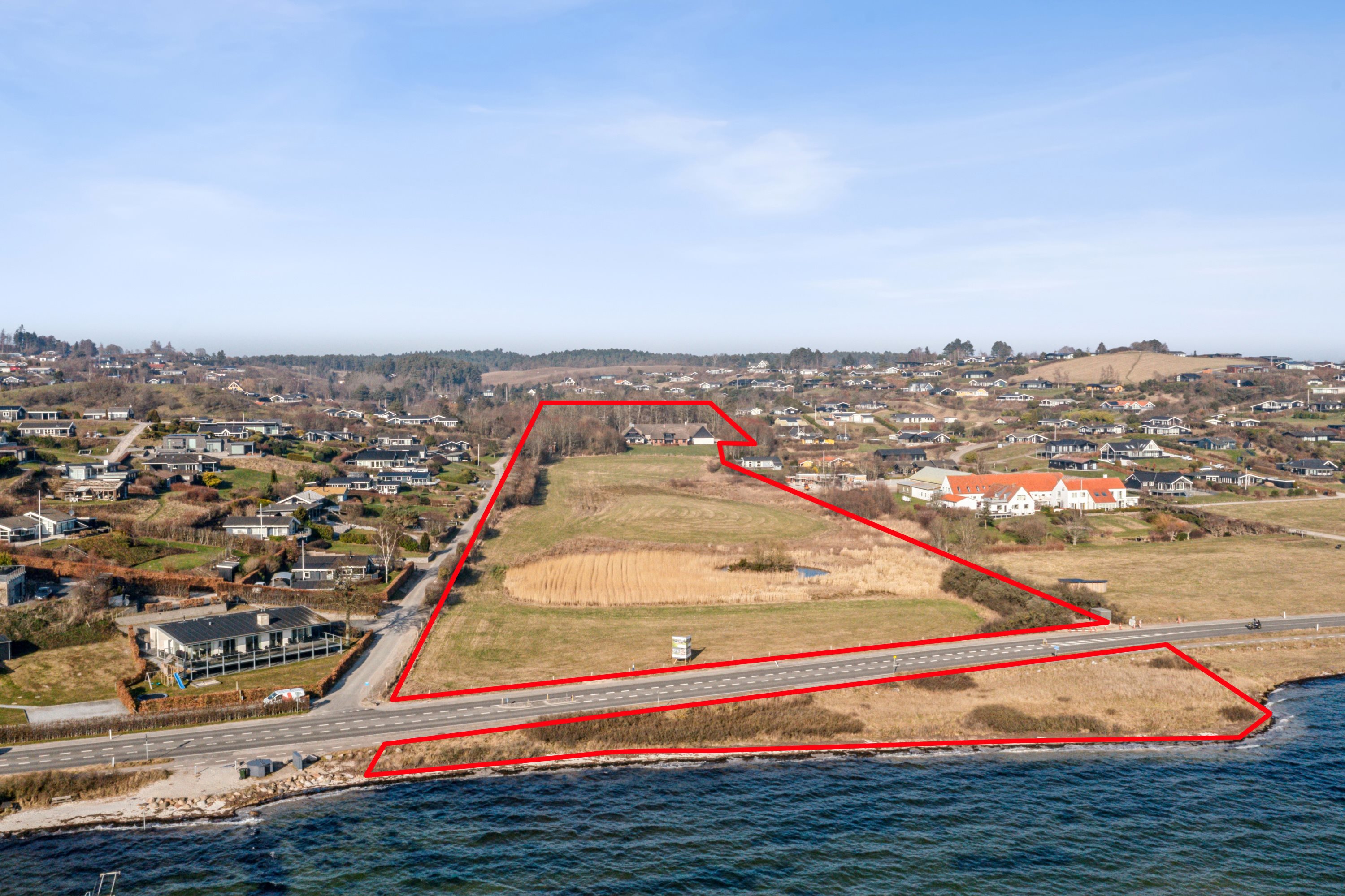 Ejendommen ligger tilbagetrukket fra Kystvejen i et naturskønt område tæt på Mols Bjerge. Her kan du nyde roen, den friske havluft og den smukke udsigt over vandet. Der er endda mulighed for at tilkøbe yderligere 3.608 m² jord bag ejendommen, beliggende i sommerhusområde og kan bebygges, hvilket skaber endnu flere udviklingsmuligheder.