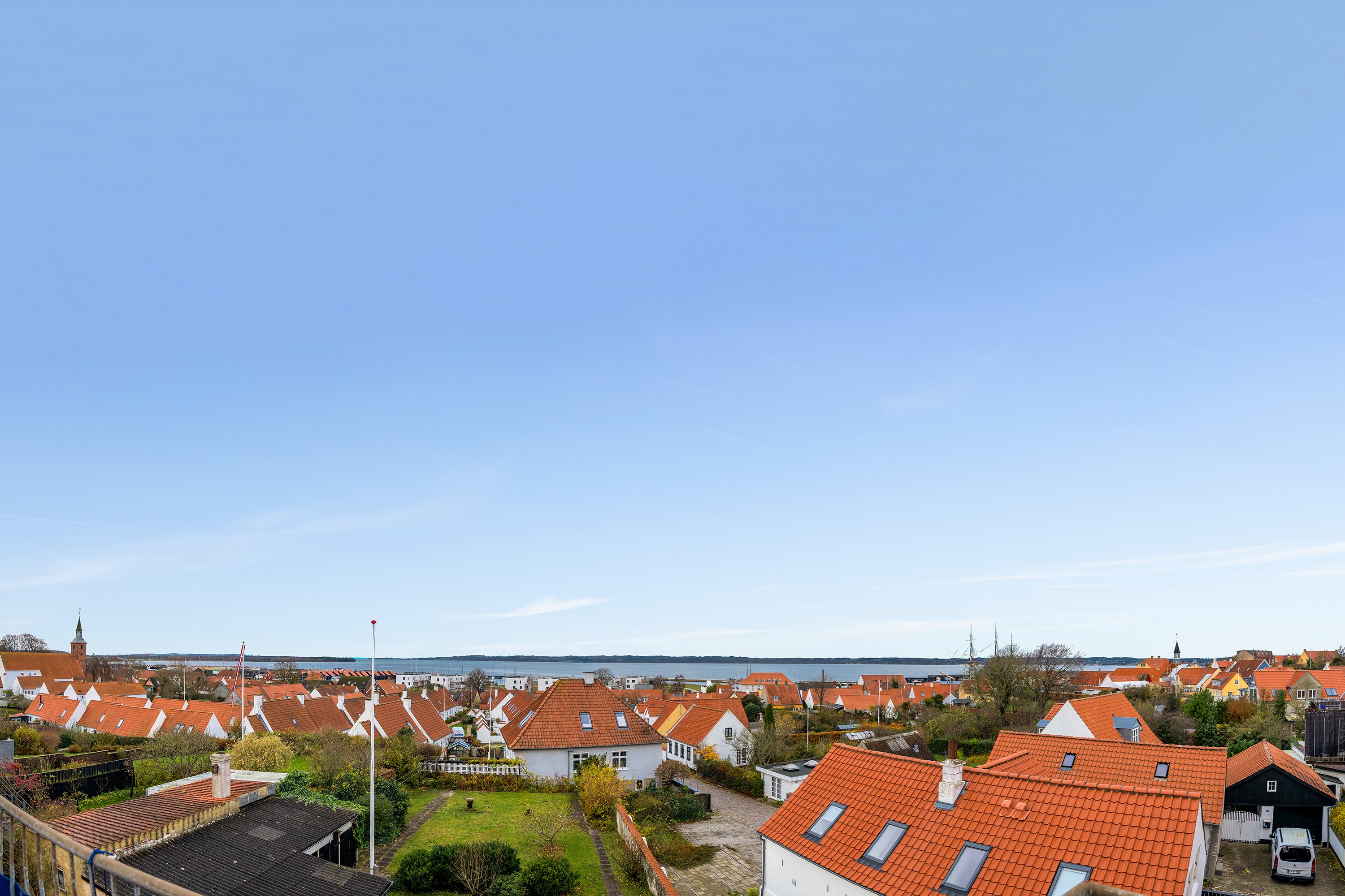 Vil du bo i en liebhaverlejlighed midt i Ebeltoft med nok den bedste udsigt i byen? Her har du panoramaudsigt til Ebeltoft Vig, Ahl, havnen, Fregatten Jylland, Mols Bjerge m.m.