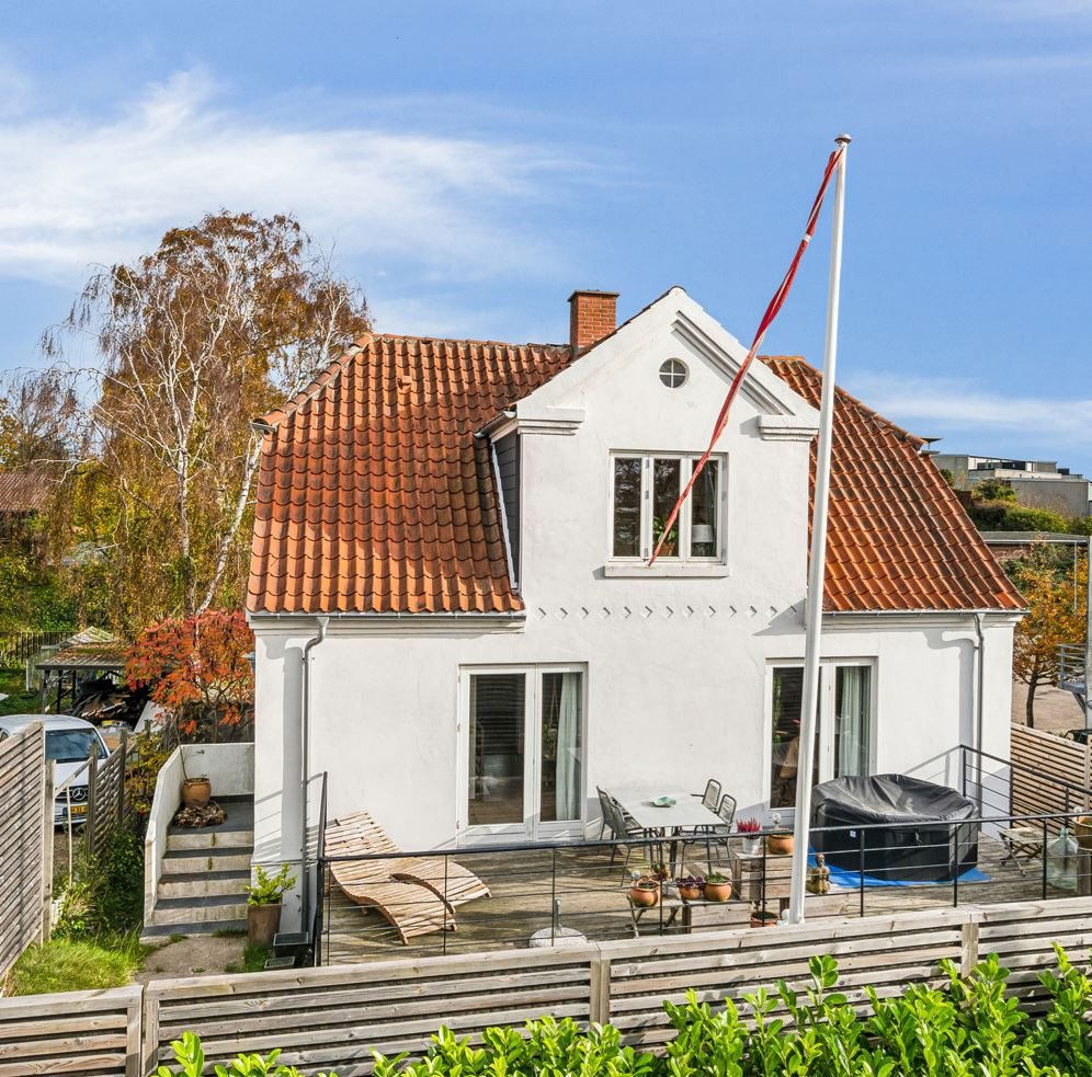 Velholdt og moderne patriciervilla med en attraktiv beliggenhed midt i Ebeltoft by udbydes nu til salg.