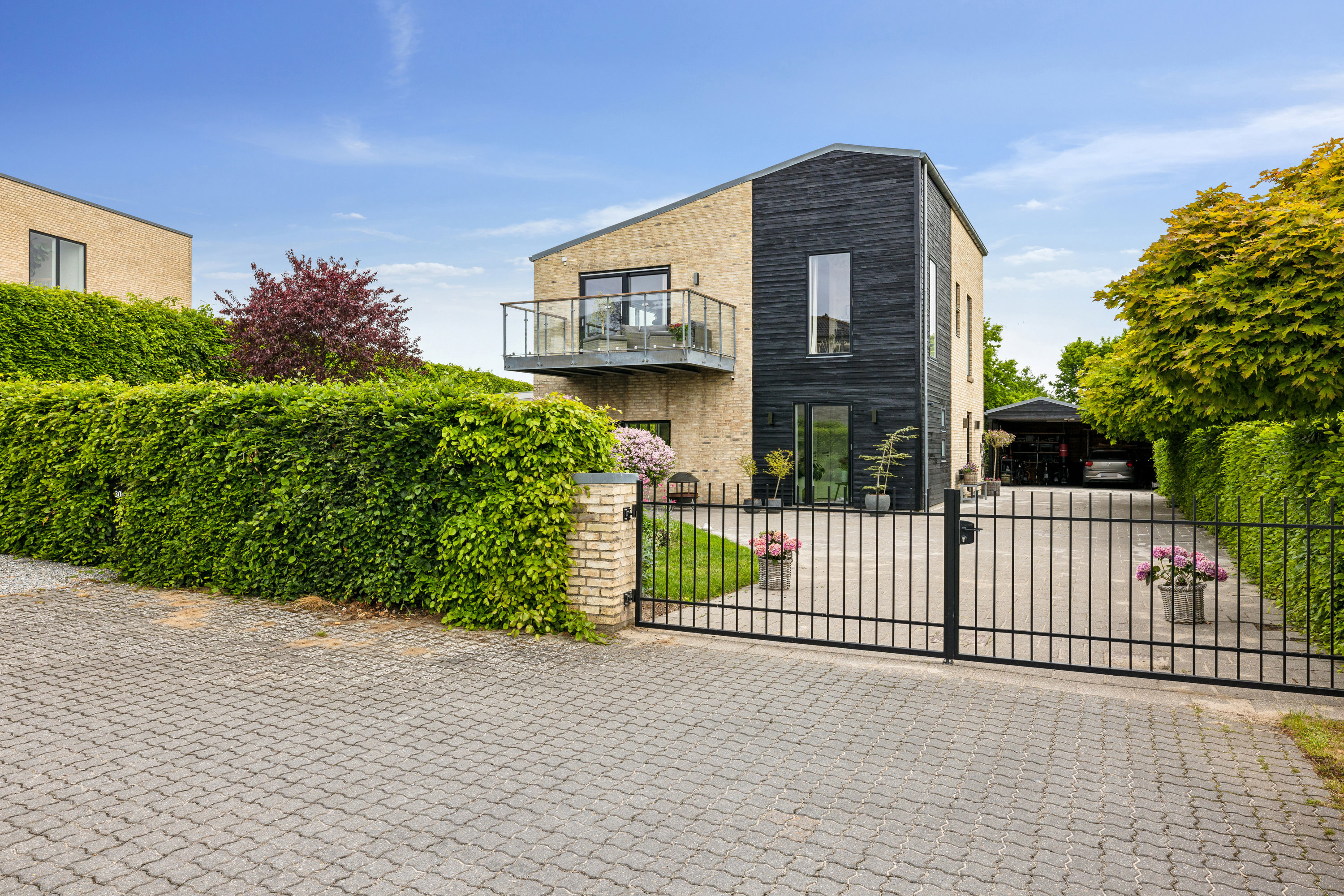 Denne arkitekttegnede villa i to plan byder på 198m2 fordelt på bl.a. fire værelser, stort køkken-alrum, stor stue samt to badeværelser.