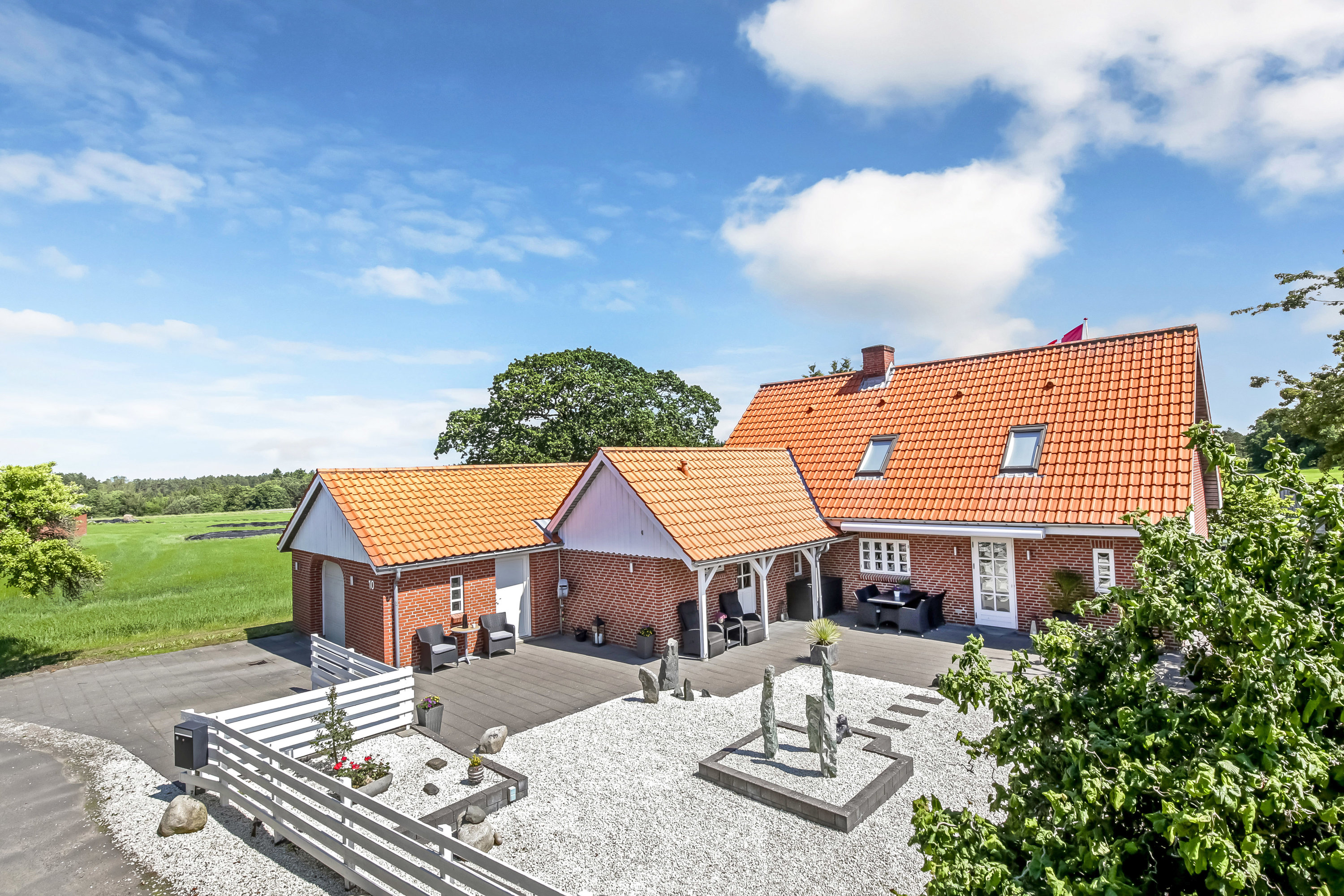 Udendørs møder du en velanlagt grund med en stor, ugeneret have, der indbyder til både leg, afslapning og kreative projekter. Terrassen er det perfekte sted at nyde morgenkaffen eller grille på lune sommeraftener, mens de omkringliggende marker og skove skaber en idyllisk ramme, der ændrer sig med årstiderne.