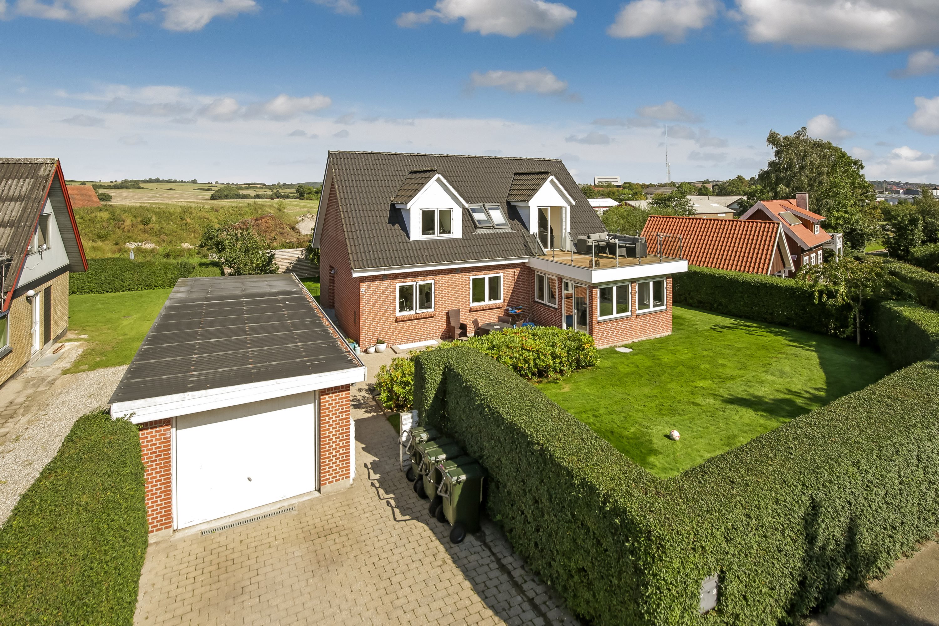 Villaens store solrige sydvest vendte tagterrasse er det perfekte sted at nyde morgenkaffen eller de lange sommeraftener med en skøn udsigt over området. Grunden på 780 kvm er nyanlagt med en dejlig lukket have, hvor der er god plads til leg og afslapning. Hertil følger også et praktisk skur/udhus samt en stor garage, som sikrer masser af opbevaringsplads og mulighed for parkering.