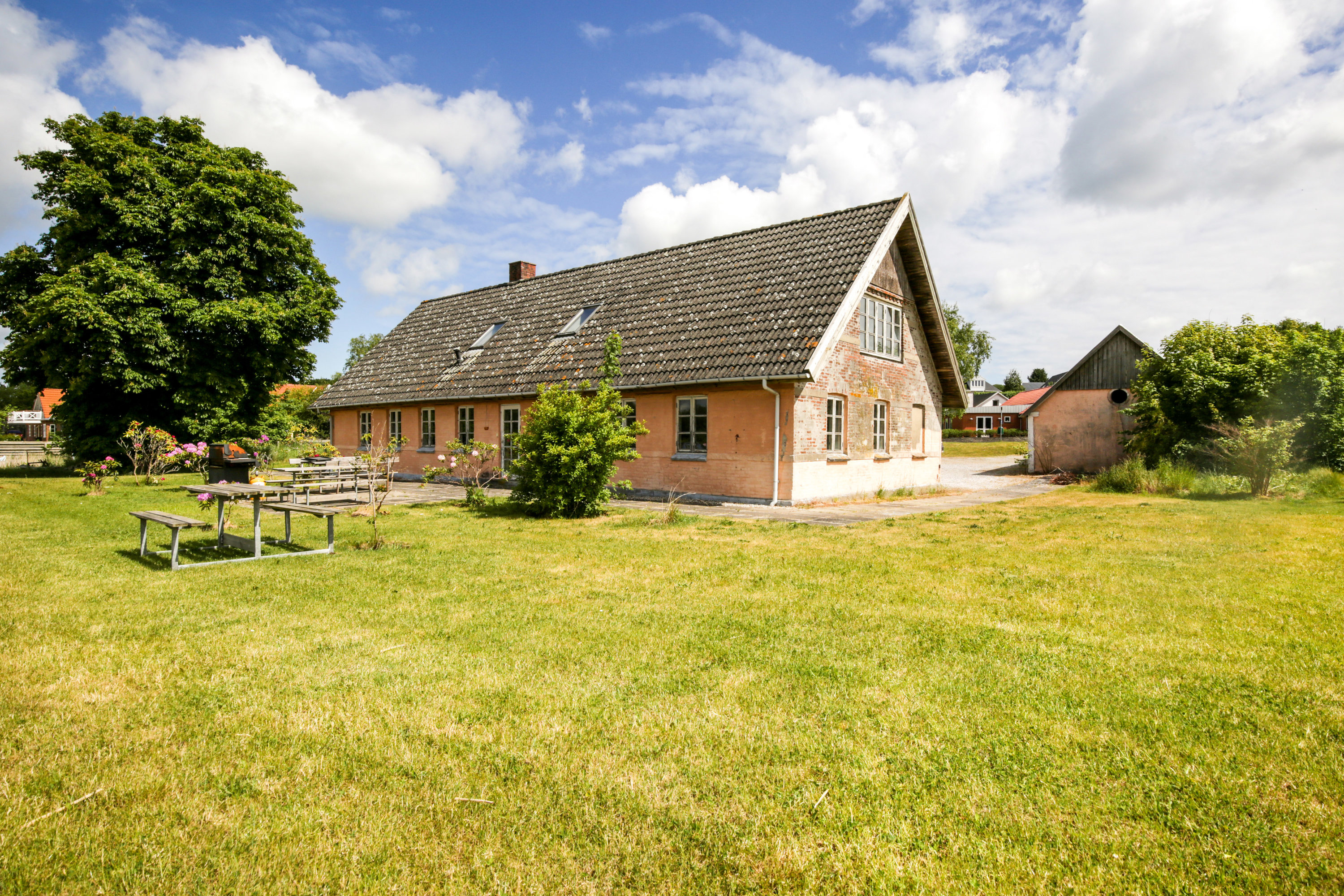 Boligen er af ældre dato og fremstår med masser af charme og et stort udviklingspotentiale. Indretningen byder på mange værelser og fleksible rum, som kan tilpasses efter behov – hvad enten det er til familie, kontor, showroom eller gæsteafdeling. De omkringliggende bygninger giver desuden mulighed for at udvide eller etablere nye funktioner, alt efter dine planer og drømme.