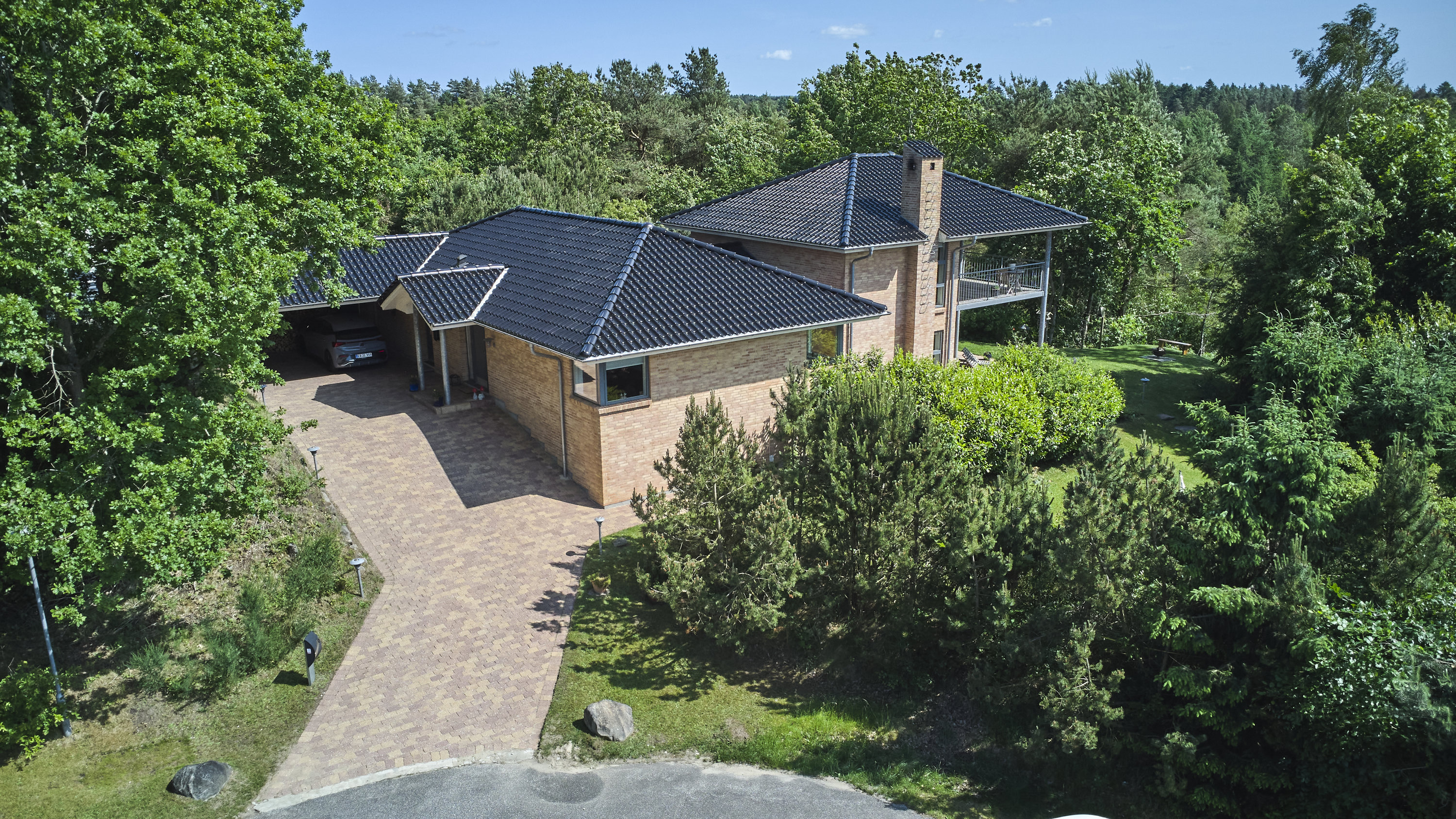 Villaen byder på tre værelser, der giver rig mulighed for at indrette sig efter behov. Derudover rummer huset et stort bryggers samt en flot og præsentabel entre. Husets køkken alrum og stue ligger i forskudte plan for enden af boligen og med den mest fantastiske udsigt ud over skovområdet. Begge rum er med masser af plads og et vidunderligt lysindfald. Den fuldmurede og arkitekttegnede stil sikrer ikke blot et stilfuldt udtryk, men også en høj grad af komfort og funktionalitet. Udenfor venter et dejligt udendørsareal, hvor du kan nyde solens stråler og den beroligende lyden af naturen, der omgiver dig.