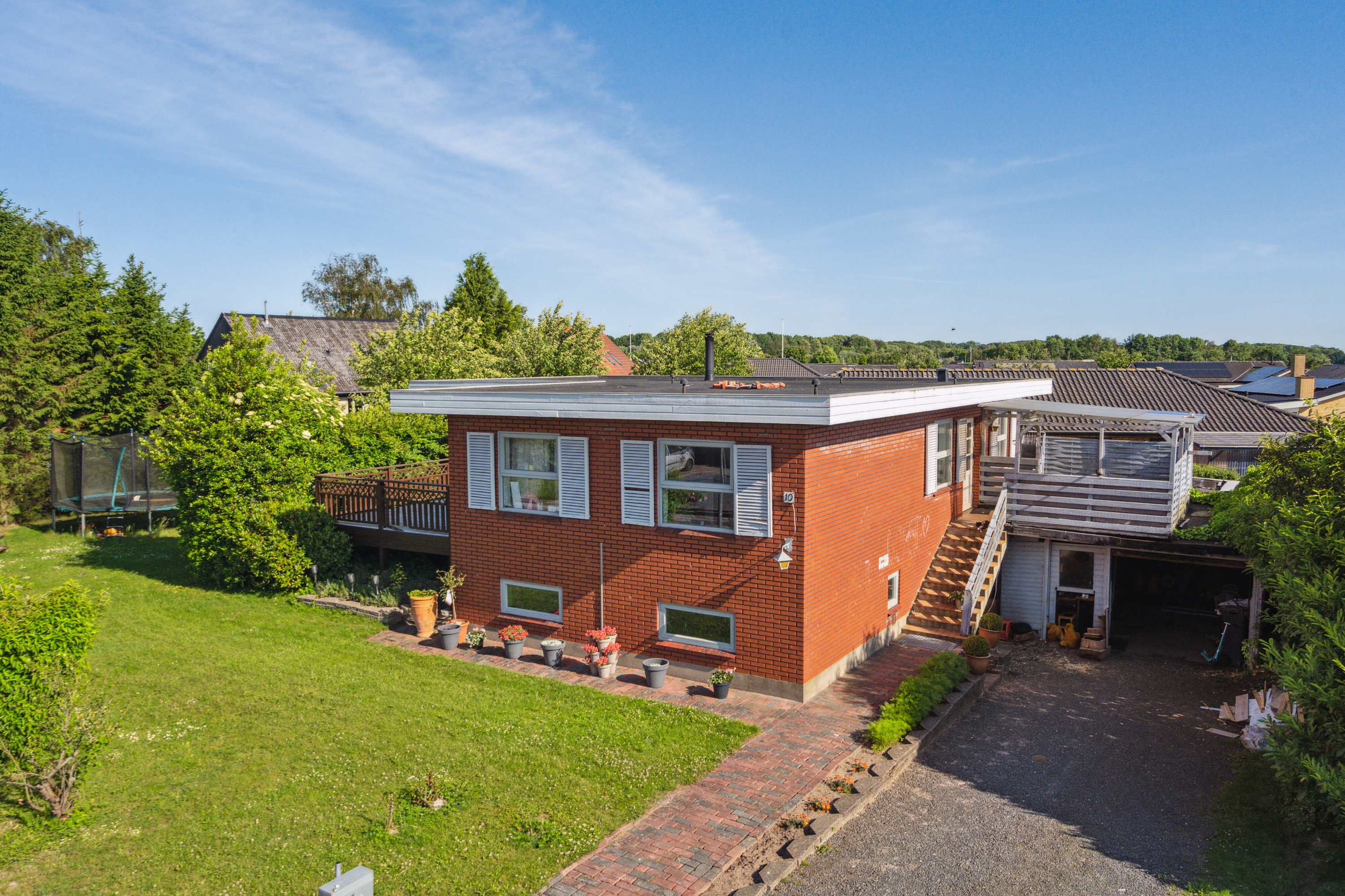 Terrassen mod øst giver mulighed for morgenkaffen i det åbne luft, hvor haven strækker sig med nemme græsarealer og plads til både leg og udendørsaktiviteter. Den ugenerede have er afgrænset med hække, som sikrer privatliv og ro, og samtidig er der nem adgang til flere udendørs opholdssteder.