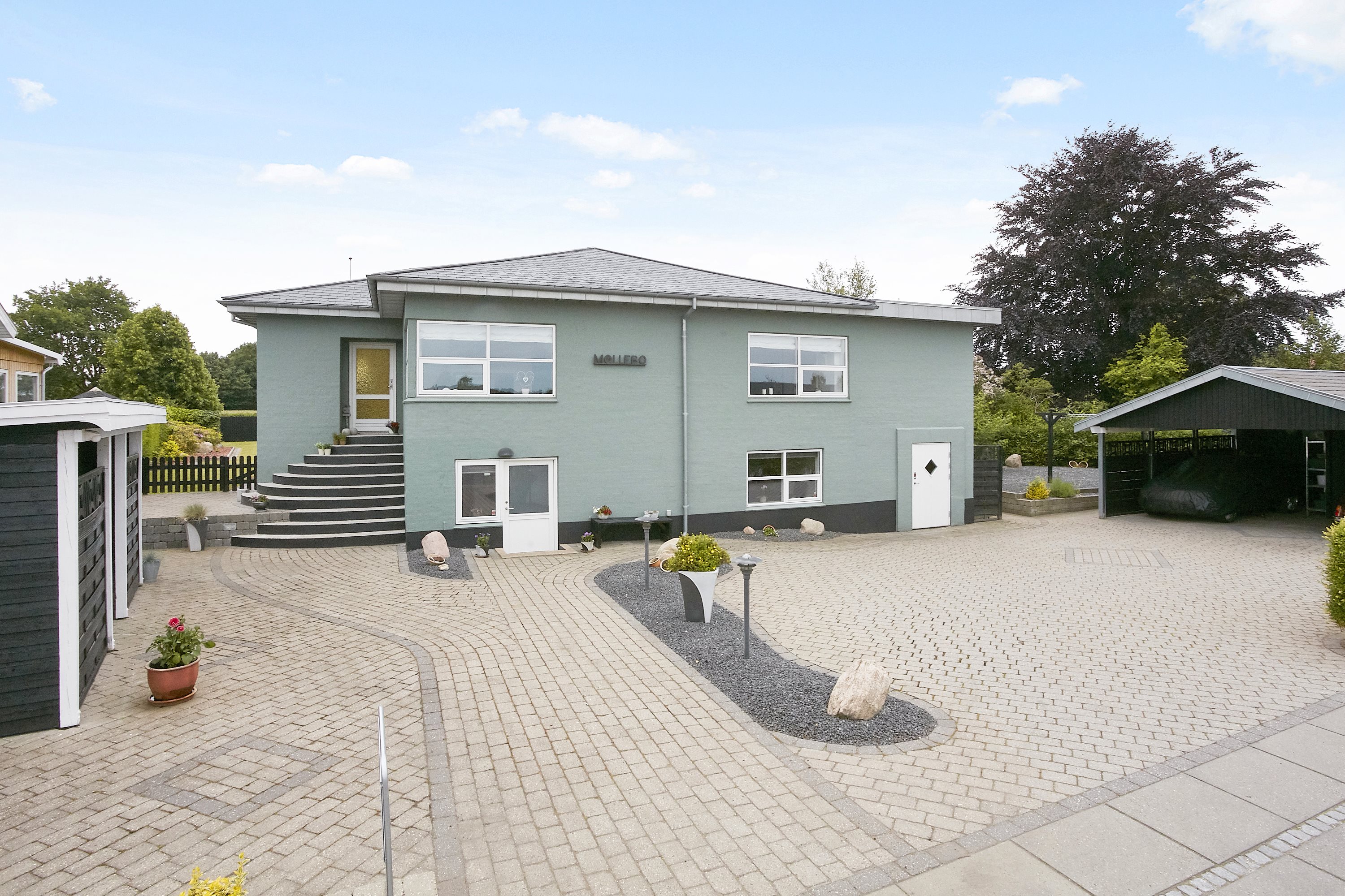 Udendørs arealer: Haven er flot og velanlagt med flere hyggelige kroge, der inviterer til afslapning og udendørs aktiviteter. Specielt skal nævnes den højt beliggende terrasse med en fantastisk udsigt over marker og åbne vidder. Her kan du virkelig nyde stilheden og fordybe dig i samtaler eller en god bog. Helt ideelt til afslapning og udendørs hygge. Under terrassen er der et veludnyttet areal med plads til haveredskaber. Derudover har ejendommen en stor indkørsel med plads til mange biler, en fin carport med tilhørende redskabsrum samt et ekstra skur til cykel opbevaring.