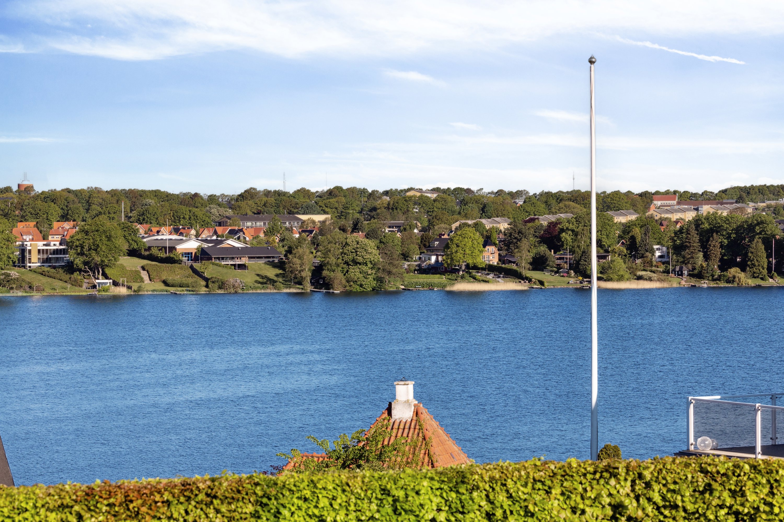 Udelivet får også fine betingelser her. Villaen er omkranset af flisebelægning, ligesom der er garage, et udhus og en overdækket carport, så I kan gå tørskoede fra bilen og ind i huset. I kan også følge fliserne om i haven, hvor terrasser mod både øst og vest kan I følge solen hele dagen, mens udsigten til Nørresø og Viborgs midtby sætter en fredelig og naturskøn ramme om udelivet. Modsat flere grunde i området er haven også plan, hvilket giver et friere udsyn over omgivelserne og ideelle rammer for leg og boldspil.
