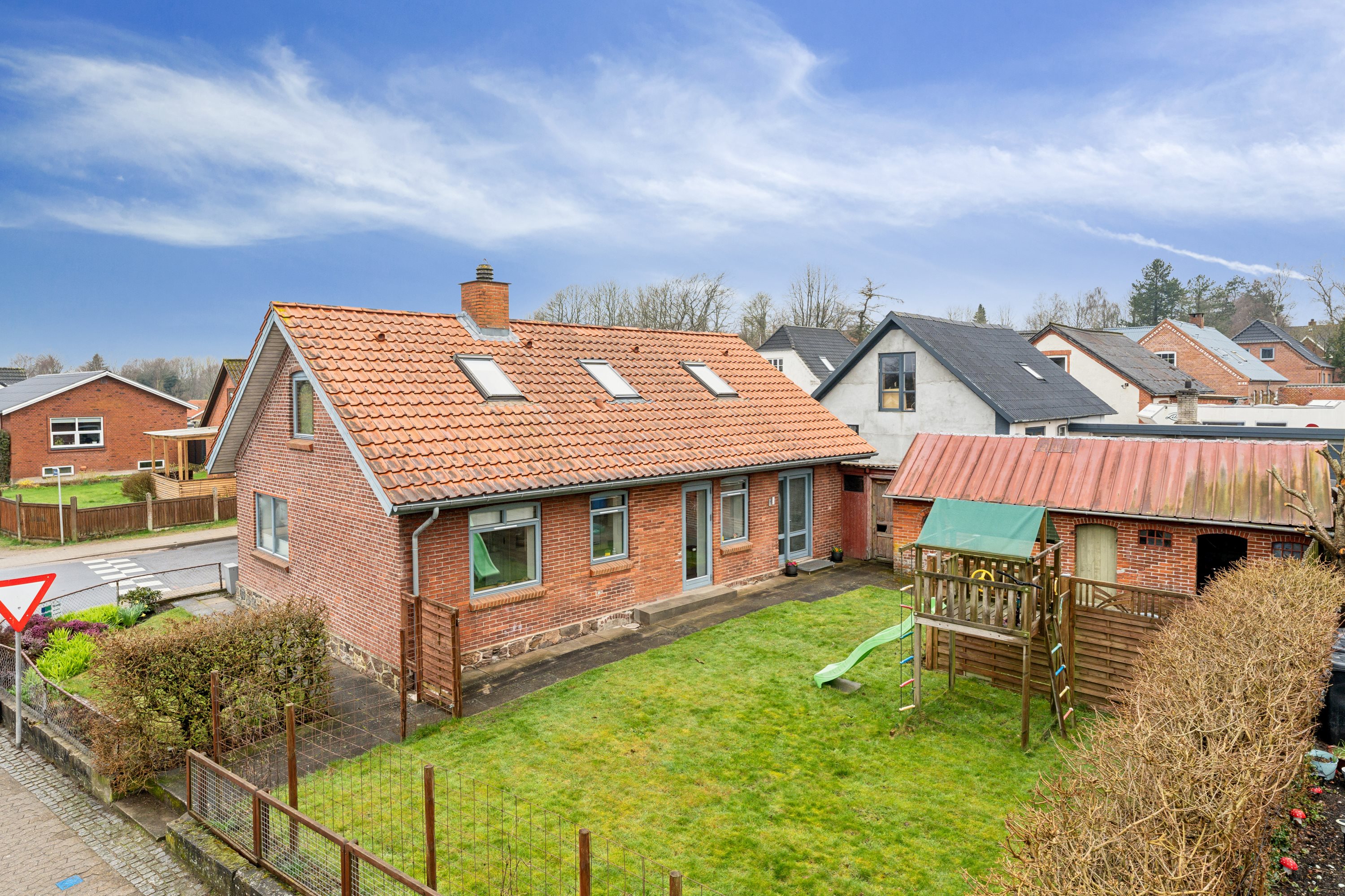 Huset blev opført i 1908, og den nemme, overskuelige grund giver jer både en fin have med græs og læterrasse samt en stor murstensgarage med skur.