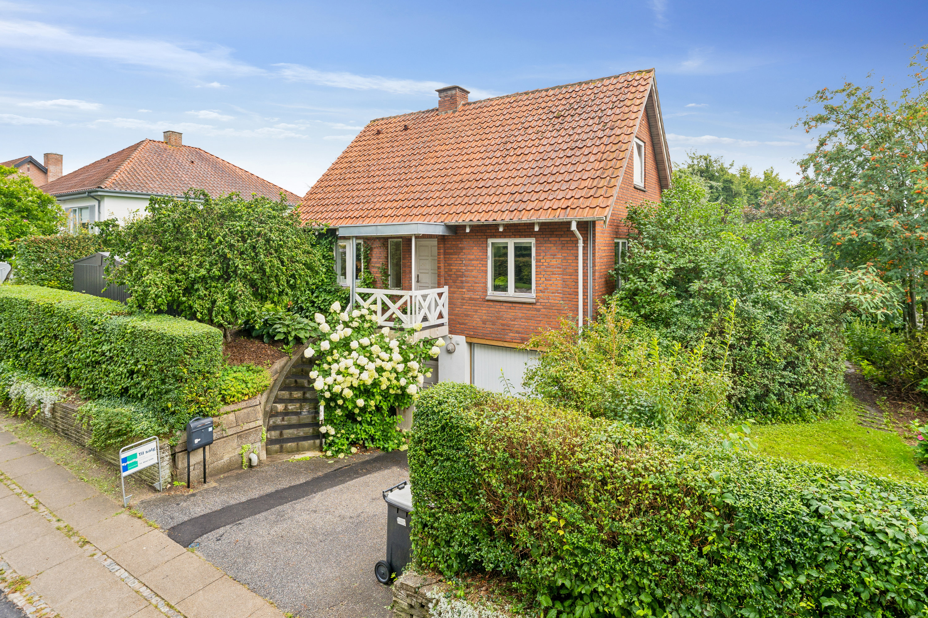 Det er en helt traditionel, solid og rigtig charmerende rødstensvilla, I skal forestille jer at bo i – et klassisk eksempel på en murermestervilla fra 50’erne. Der er indbygget sjæl og charme og en drøm af en have – alt sammen en smuttur fra Randers C. Vi starter med det bedste af det hele; haven. Det er en af de velanlagte haver, der har fået lov til at vokse flot op med smukke bede, gamle træer og alverdens hyggekroge. Her hersker roen og freden. Den klassiske, nydelige kombination af røde sten, røde tegl og hvidrammede vinduer byder jer velkommen, og inden døre fordeles 159 etagemeter på tre etager. Der er vaskerum, disponible rum og garage forneden; stue, udskiftet køkken, bad og værelse nr. 1 i stueetagen; og yderligere to værelser samt et walk-in-closet på 1. sal. Det er lyst, hyggeligt og rigtig charmerende. I får det hele lige ved hånden: supermarkeder, skole og daginstitution ligger nemlig alle inden for en radius af 500 m.