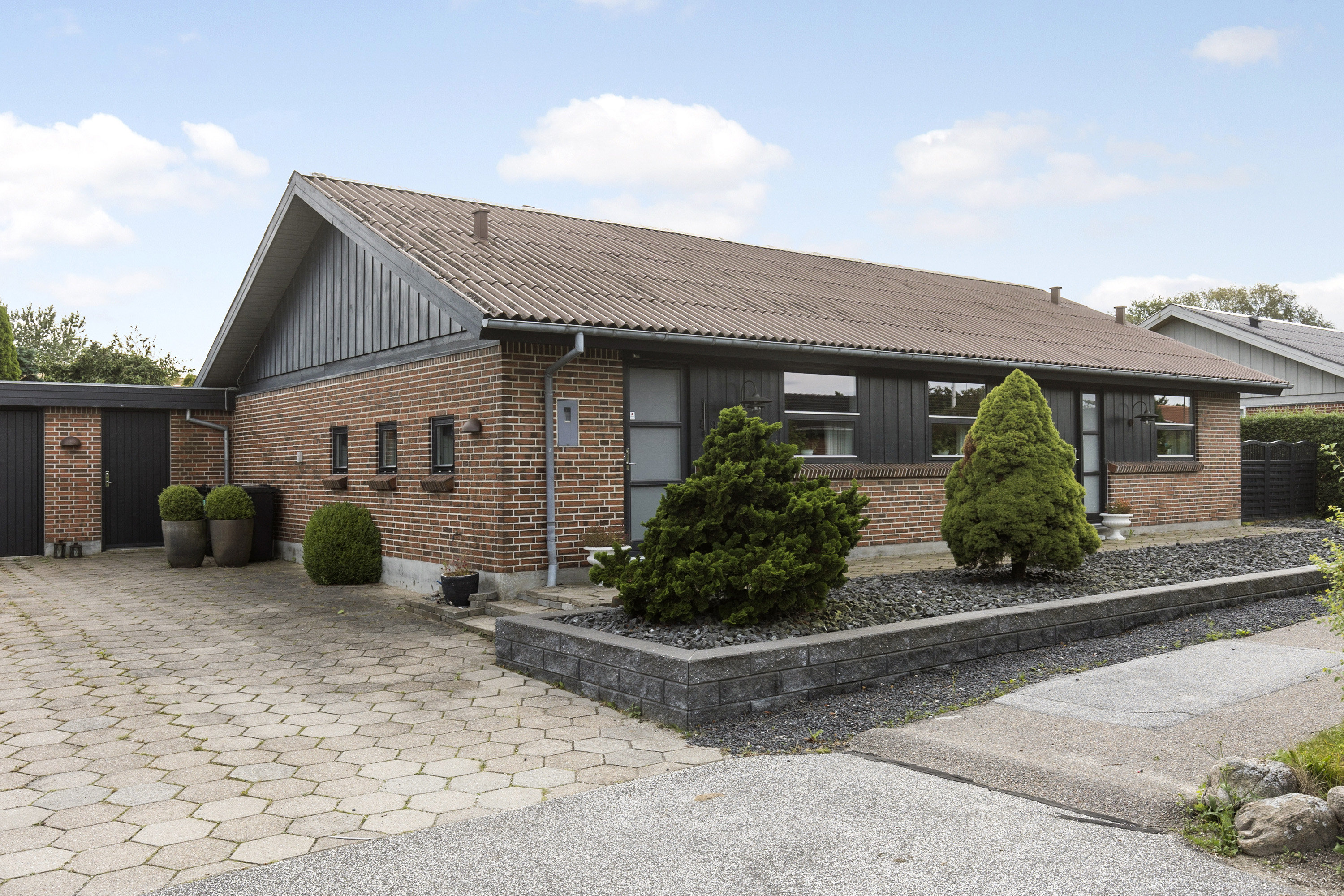 Udenfor får du en skøn og privat have med god plads til leg, afslapning og udeliv – samt en stor garage med integreret hobbyplads.