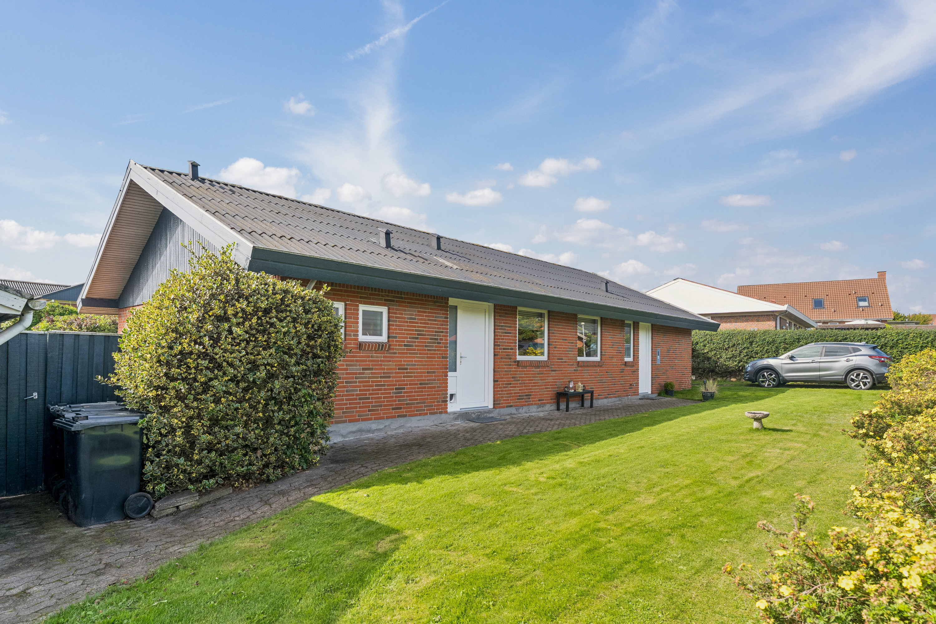 Der er tale om et fuldmuret hus i yderst velholdt stand, hvor indretningen folder sig ud med et nyere badeværelse samt et nyere køkken i åben forbindelse til stuen, hele fire værelser og indgang via entré og bryggers. Som endnu en særlig god detalje holdes huset med selskab af en særdeles ugeneret have, hvor I kan nyde roen og lade børnene boltre sig. Sidst, men ikke mindst, forbinder en delvist overdækket, sydvestvendt terrasse opholdsrummet og haven, og så er der også carport og skur.
