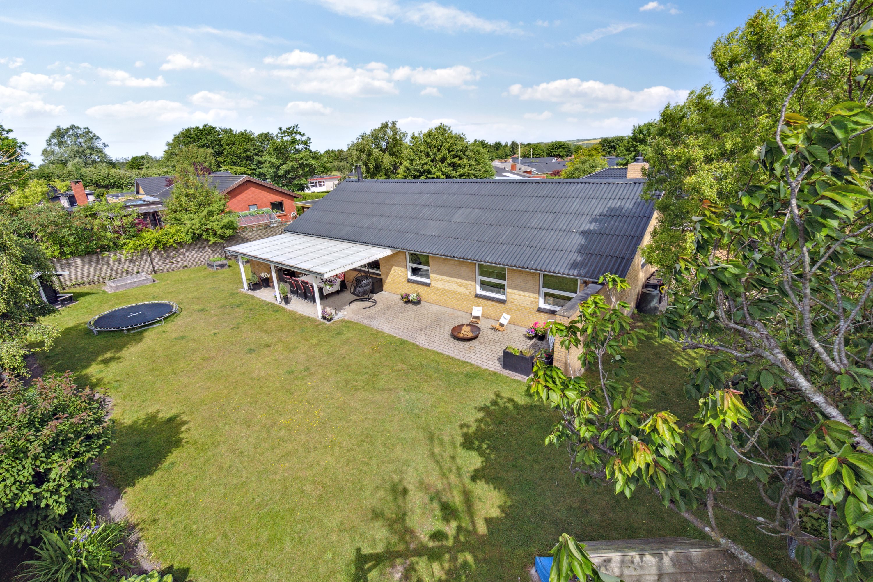 Jeres nye hjem ligger helt ugeneret på en rolig villavej. Allerede ved første øjekast står det klart, at I overtager en yderst velholdt etplansvilla, og her er lagt mange arbejdstimer i både de udendørs og de indendørs rammer. Med i pakken hører desuden den oprindelige garage. Samtidig får udelivet perfekte betingelser i den fantastiske have, der er indrettet med en stor overdækket terrasse.