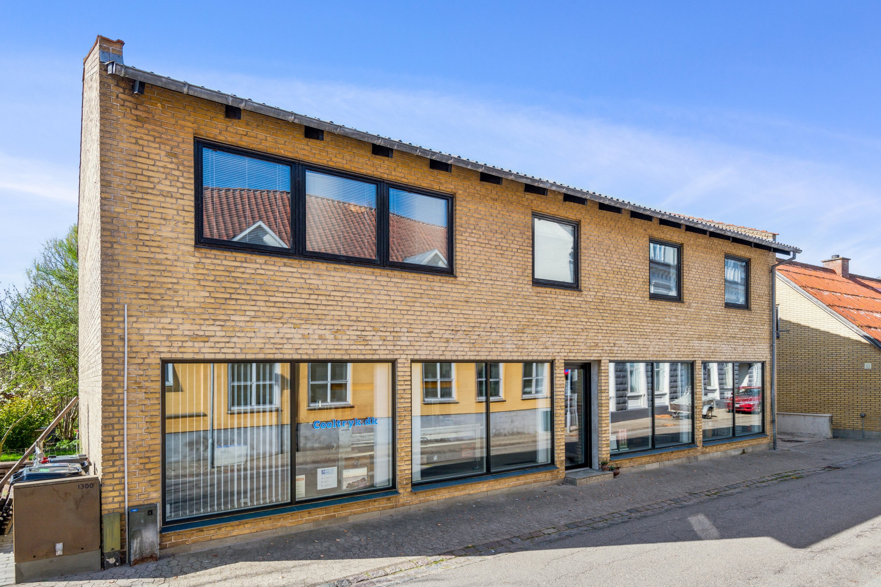 Store vinduespartier ud mod gaden inviterer potentielle kunder indenfor. Ejendommens nedre plan består af et område til butik/kontor i åben forbindelse med et disp. rum, ligesom I finder et separat disp. rum, en entré og et gæstetoilet, så der kan også etableres tekøkken, ekstra kontorpladser mv. Derudover kan I efter endt arbejdsdag trække jer tilbage på førstesalen, som giver jer hele fire værelser, et køkken, en stue, et badeværelse og endnu et disp. rum. Sikke et boligeventyr og en fantastisk mulighed, der venter her!