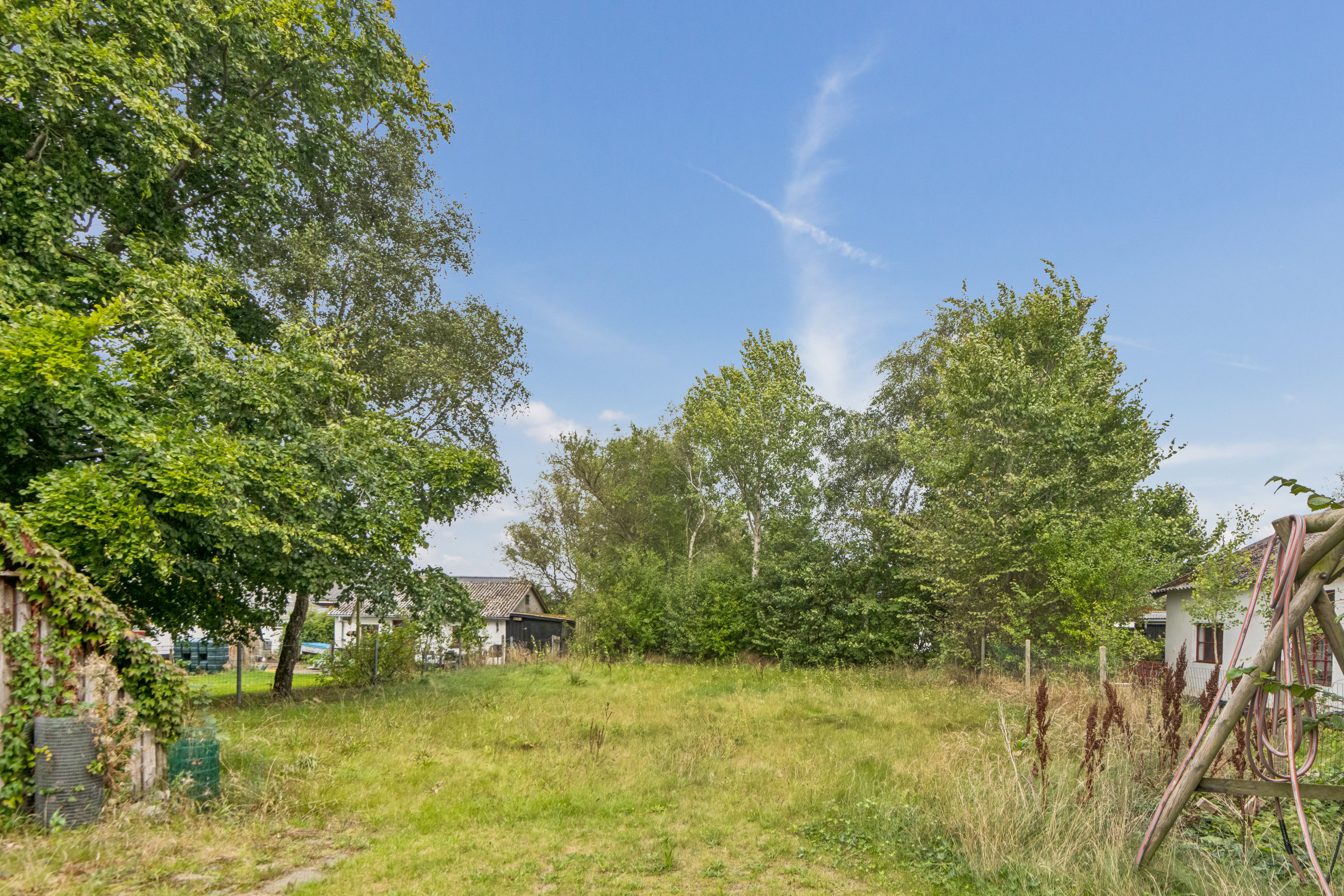 Den store grund indbyder til at anlægge terrasse eller bede efter eget ønske og giver plads til leg, boldspil eller en køkkenhave. Nærområdet er præget af ro og grønne omgivelser, hvilket gør huset velegnet for dem, der søger tryghed og natur tæt på hjemmet. Her kan I få hverdagens praktiske goder i kombination med fredelige rammer, ideelt for familier, par eller førstegangskøbere, som drømmer om et privat udendørsareal og gode muligheder for at sætte sit eget præg.
