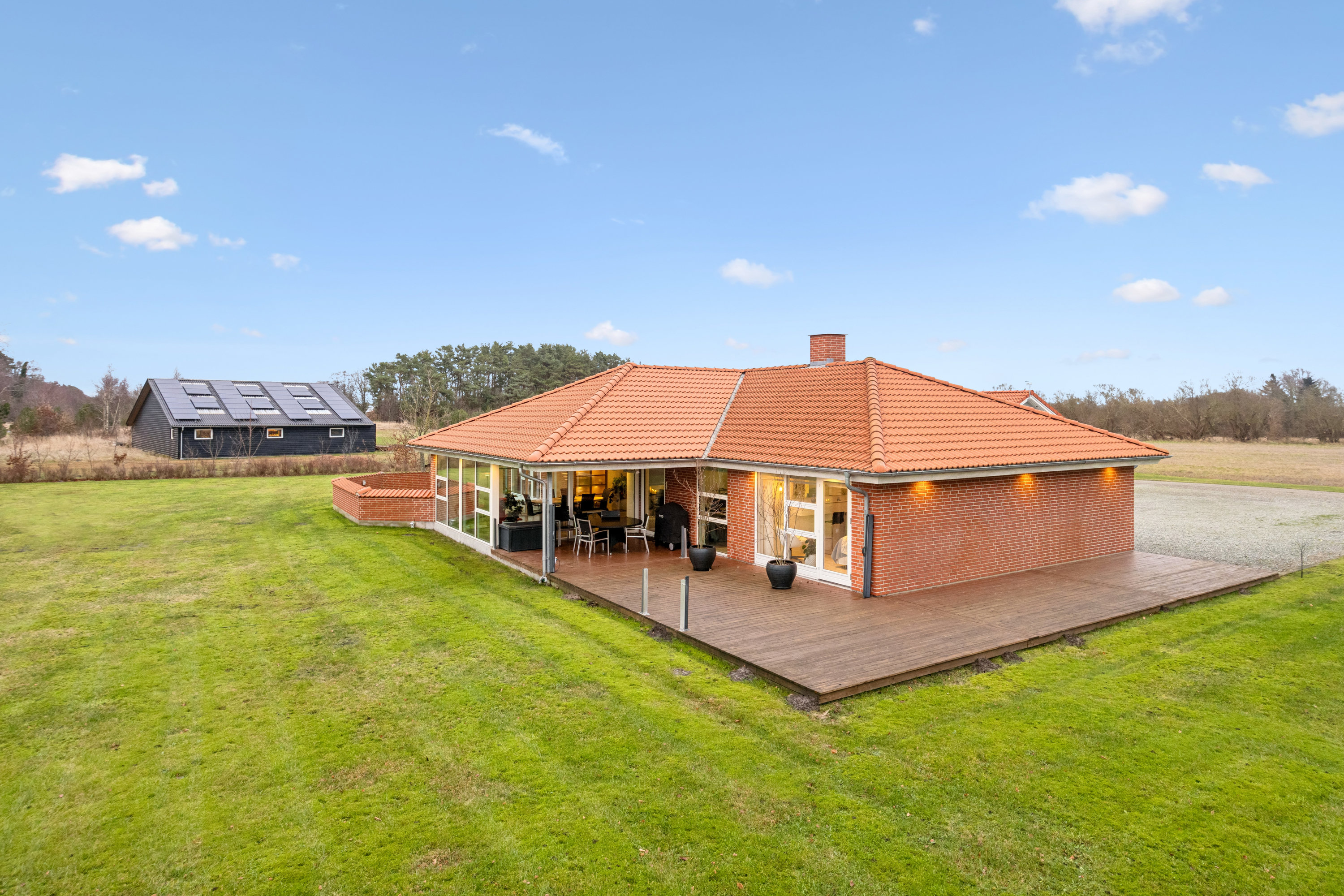 Der er 1,3 ha grund, som giver mulighed for at have et mindre dyrehold eller køkkenhave. I får også en stor have, som er nem at holde, samt flere skønne terrasser med solpletter mod syd, øst og vest.