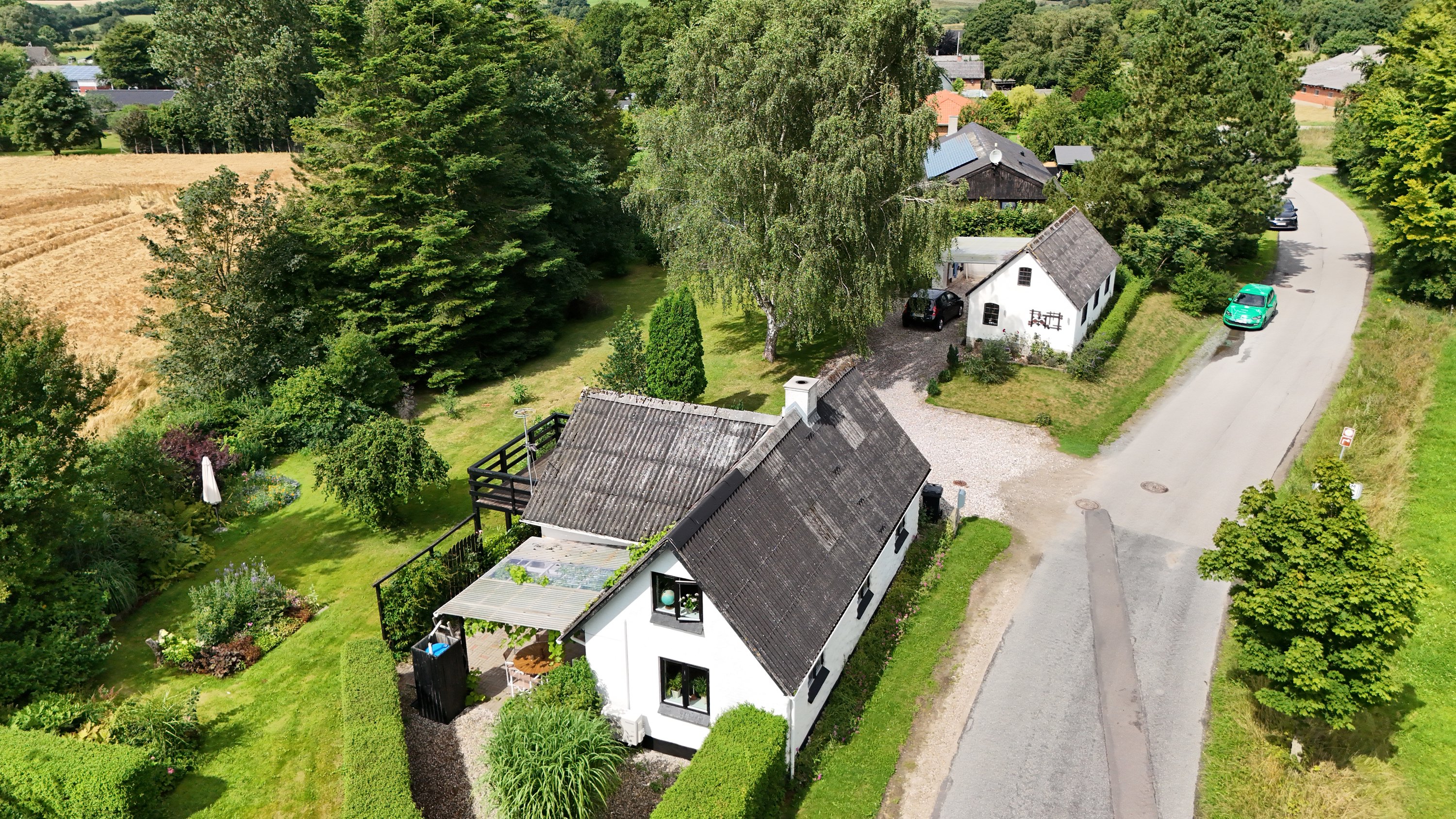 Ejendommen ligger på en stor grund på hele 1.907 m², der indrammes af frodige hække, grønne træer og en velanlagt have med stor plæne og masser af solrige kroge. Her finder du også både en læfuld, overdækket terrasse, et flot anneks med egen terrasse – oplagt til gæster eller teenageren – samt et stort udhus med to separate sektioner og en carport.