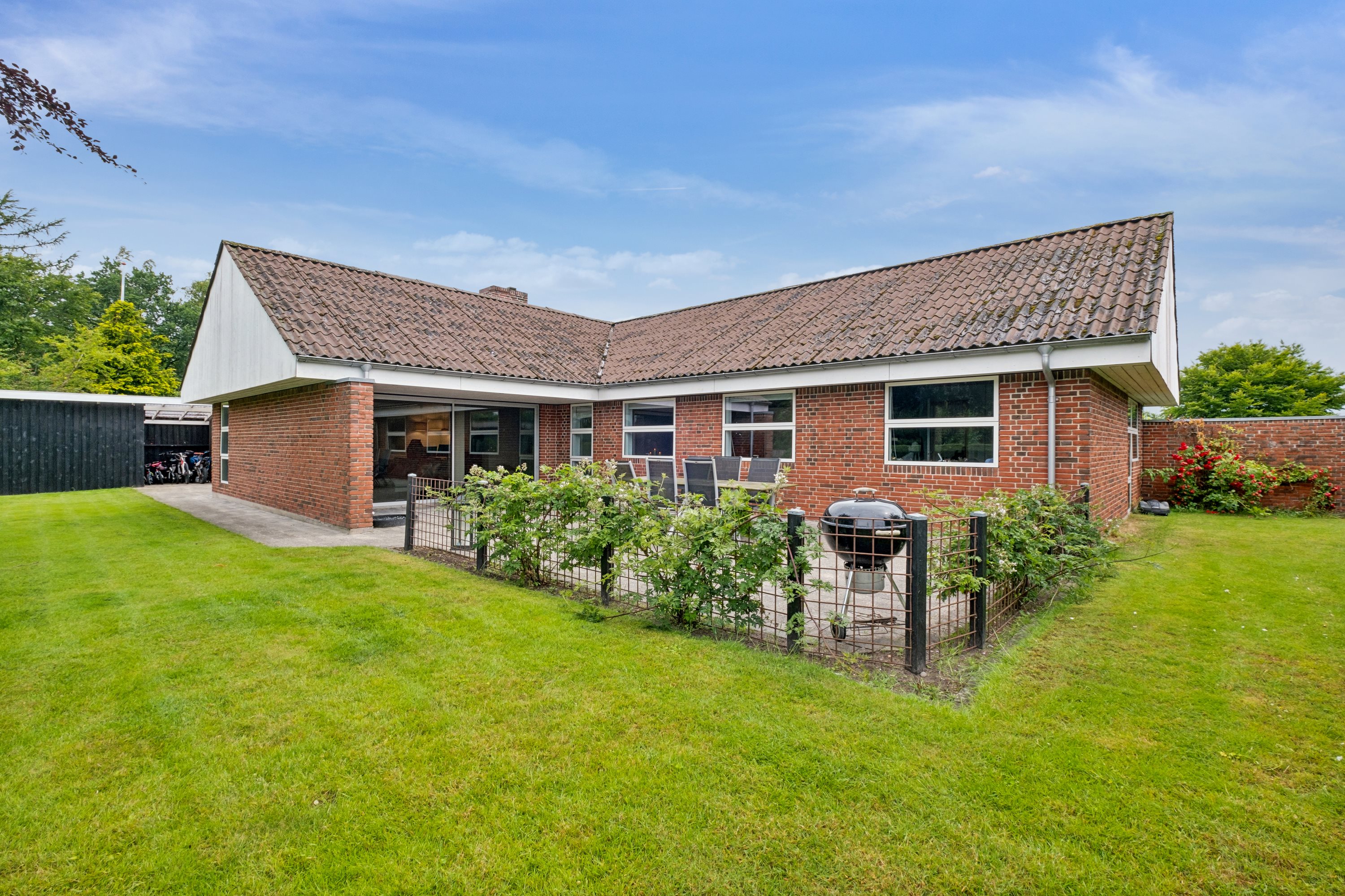 Udendørs: Til villaen hører en stor, ugeneret have med plads til leg, afslapning og haveprojekter. Haven er et skønt fristed, hvor både børn og voksne kan nyde udelivet.