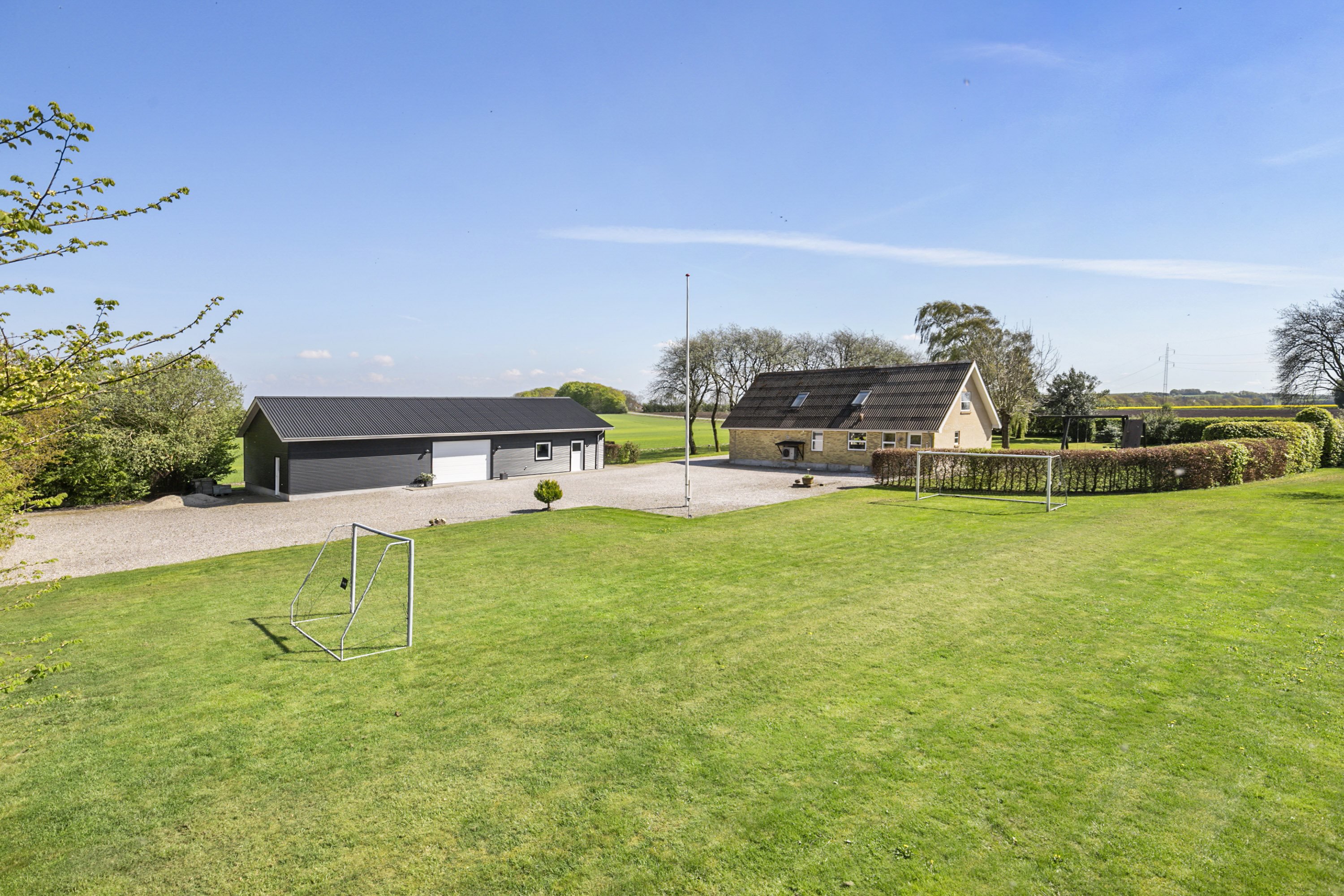 Udendørs er der ligeledes mange muligheder. Her finder du et stort udhus fra 2021 på i alt 200 m2, hvoraf 120 m2 er garage og 80 m2 er et opvarmet rum, der kan bruges som gildesal, træningsrum eller et lækkert værksted – kun fantasien sætter grænser! Ejendommens energimærke er i topklasse (A2010), og varmen leveres effektivt af en luft-til-vand varmepumpe, mens det opvarmede udhus har en luft-til-luft varmepumpe.