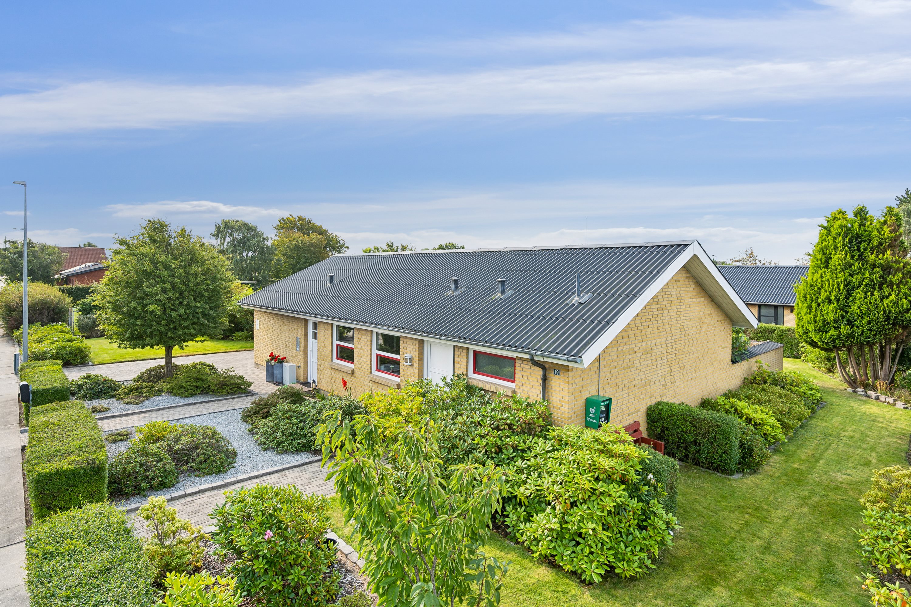 På Ørnevej 19 ligger en vaskeægte familievilla i et roligt og trygt kvarter tæt på hverdagens gøremål. Her kan børnene lege trygt på Gøgens Vænge, der er en sidegade til Ørnevej, og samtidig bliver I naboer til fællesarealet med boldbane og legeplads. Foruden den gode beliggenhed flytter I ind i 142 veldisponerede kvadratmeter, der breder sig over ét plan, og med tre værelser på stribe, kan hele familien drømme væg mod væg. Nyere Eternittag fra ca. 2005.