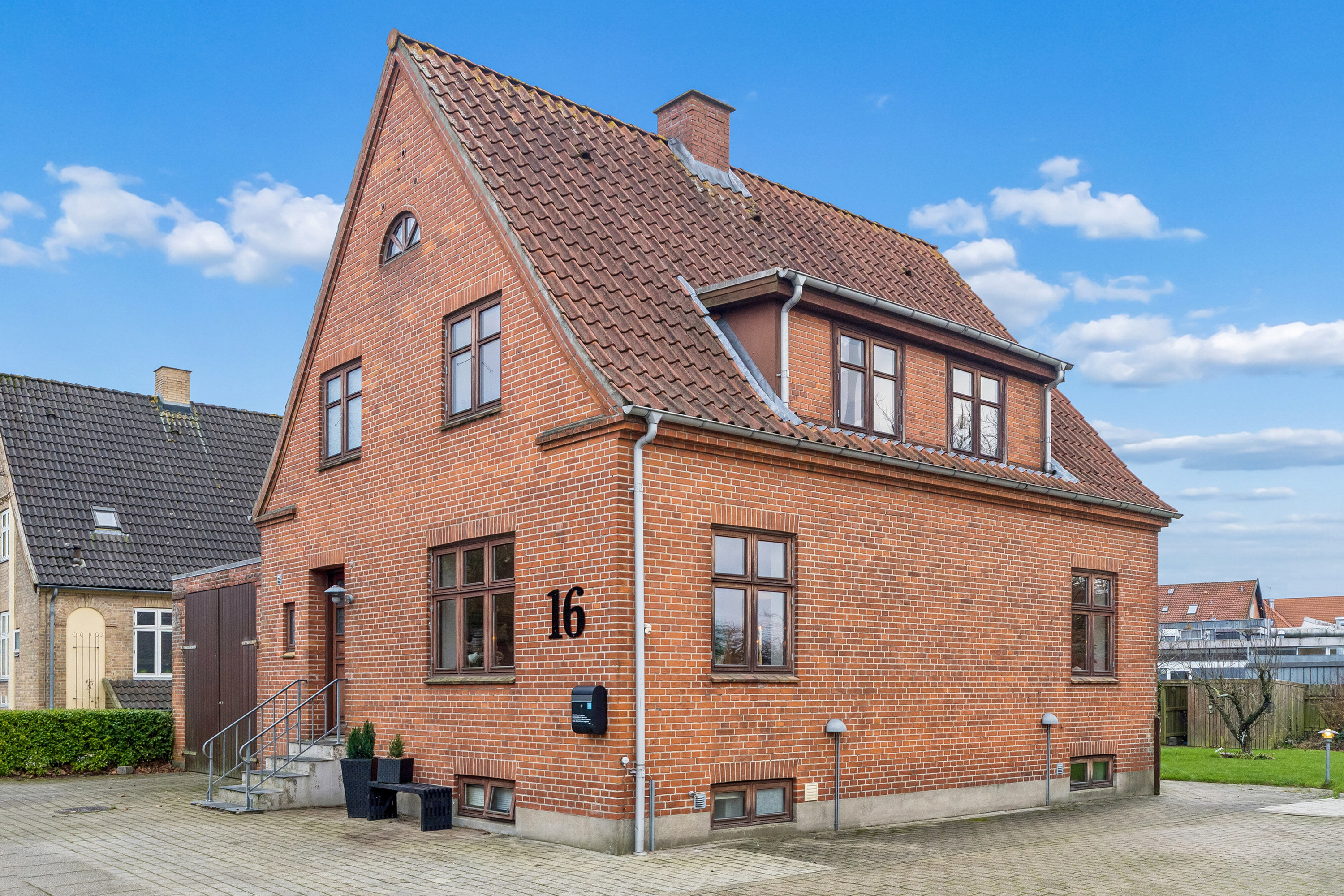 Det er det klassiske, smukke udtryk, der møder jer med de røde mursten, den murede gesims, sprossevinduerne og det nyere tag. Jeres kommende hjem er nemlig en murermestervilla, der samtidig ligger helt centralt i Hjørring, tæt på både byen og naturområder.
