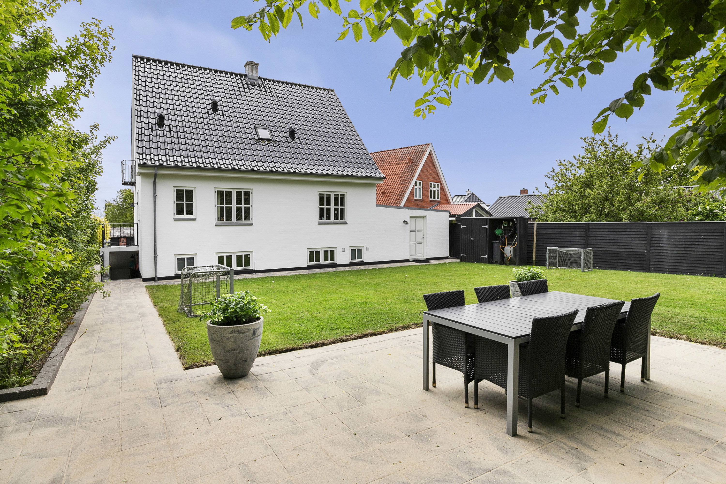 Beliggende i et centralt område, præsenterer denne totalrenoverede villa et indbydende hjem med masser af plads til familien. Med en størrelse på 159 kvadratmeter fordelt på to stuer og fem værelser, tilbyder boligen en lys og rummelig atmosfære, der indbyder til hyggelige stunder. Kælderen på 77 kvadratmeter giver ekstra plads til kreative indretningsmuligheder og funktionelle rum, såsom et vaskerum og et værksted.Husets stilrene køkken, der er udstyret med moderne faciliteter, smelter sammen med de åbne opholdsmiljøer, hvilket skaber en naturlig flow i hjemmet. Her kan man nyde måltider med familien eller underholde gæster i det lyse spiserum, hvor store vinduer lader sollyset strømme ind.De to badeværelser samt toiletter på alle tre etager sikrer, at der ikke er nogen ventetid, selv når familien er samlet. Den lukkede have, der omkranser ejendommen, giver mulighed for udendørs aktiviteter og afslapning i private rammer. Med en attraktiv beliggenhed i nærheden af byens faciliteter, kan man nemt nyde både natur og byliv.Dette hjem er ikke blot en bolig, men et sted, hvor minder skabes. Her er der plads til både leg og ro, og med det isolerede udhus er der også mulighed for opbevaring eller kreative projekter. Kom og oplev denne charmerende villa, hvor komfort og stil går hånd i hånd.