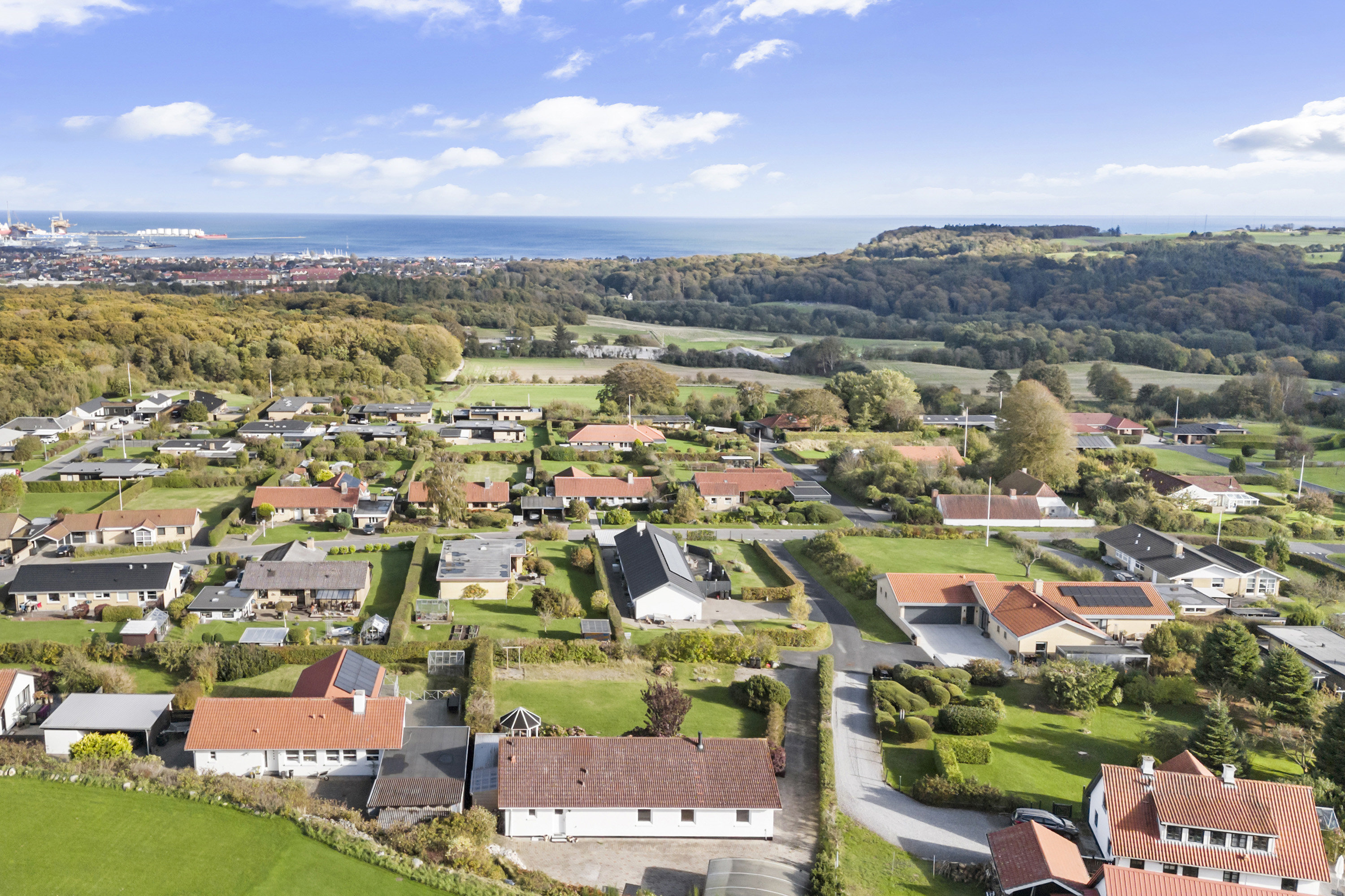 178 m², 6 rum, opført 1963, renoveret 1997, grund 1.575 m². Villaen byder på et roligt førsteindtryk med hvid facade, lavt byggeri og bred indkørsel. Placeringen på grundens højere del giver fra både stue og køkken et klart kig mod havet, så dagslys og horisont trækker ind i boligens centrale opholdsrum. Indgangspartiet leder direkte ind i et funktionelt flow mellem sofaområder og køkken.Indretningen favner både samvær og afgrænsede rum. Huset rummer flere gode værelser, to badeværelser samt et bryggers med vaskefaciliteter. Køkkenet er centralt med ø og spiseplads ud mod haven, mens stuen har store vinduespartier og plads til både sofaarrangement og spiseafdeling. Træparketgulve i opholdsrum og gode skabs-/opbevaringsmuligheder gør planløsningen praktisk for familieliv. Fra stuen er der forbindelse til et separat rum, som kan bruges som kontor eller ekstra dagligstue.Særlige fordele ses i udearealerne og boligens funktionelle detaljer. Terrasser på begge sider af huset forlænges af en velanlagt have med stor plæneareal, beplantede bede og et mindre lysthus/udestue, ideelt til morgenkaffen med udsigt over havet. Foran huset en stor paved indkørsel med overdækket parkeringsplads og et udhus til redskaber. Den rummelige gårdsplads giver gode muligheder for udendørs aktiviteter og nem adgang mellem bil, hjem og have.Beliggenheden kombinerer kystnær stemning med grønne omgivelser; fra ejendommen er der udsyn til både kystlinien og omkringliggende skovområder, hvilket skaber en følelse af rum og ro. Området fremstår som et veletableret boligkvarter med lav trafik og privatliv mod haverne. Hverdagens indkøb, skole og fritidsaktiviteter nås nemt fra området, samtidig med at kysten tiltrækker til gå- og cykelture på de klare dage.Samlet set får I en rummelig villa på 178 m² med fleksibel planløsning, to badeværelser, flere gode soveværelser og solide udearealer på en 1.575 m² grund. Den direkte havudsigt fra opholdszonen og de private terrasser gør boligen særligt velegnet til familier, der ønsker plads til både samvær og hverdagsfunktioner. Kontakt mægler for fremvisning og oplev huset og haven på nært hold.