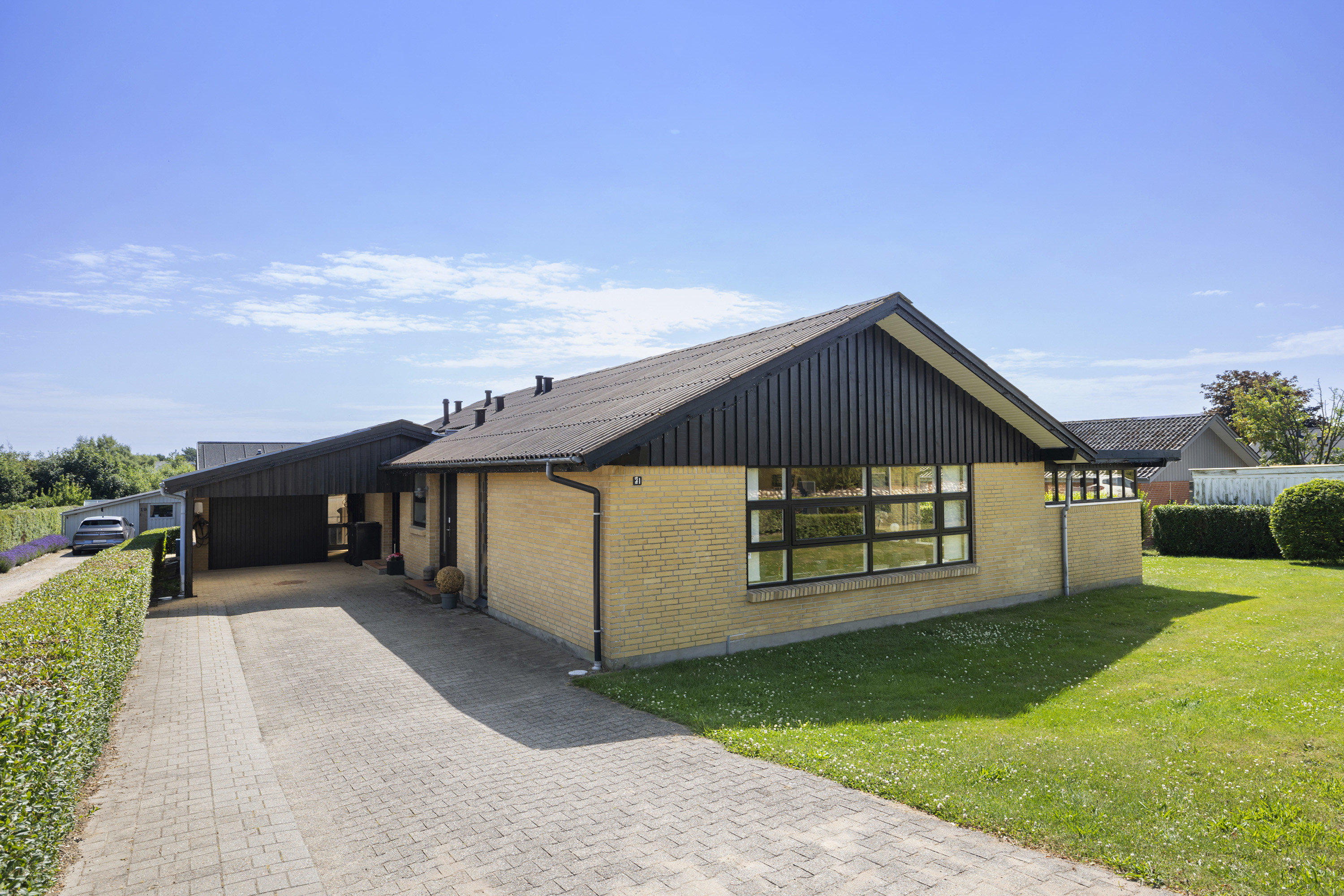 Udenfor venter en dejlig terrasse, hvor du kan nyde morgenkaffen i solen eller grille med vennerne om aftenen. Den frodige have giver mulighed for leg og afslapning, og de ugenerede udendørsarealer sikrer privatliv, så du kan nyde de varme sommerdage i fred. Den gode planløsning gør det let at skabe et hjem, der passer til din livsstil.