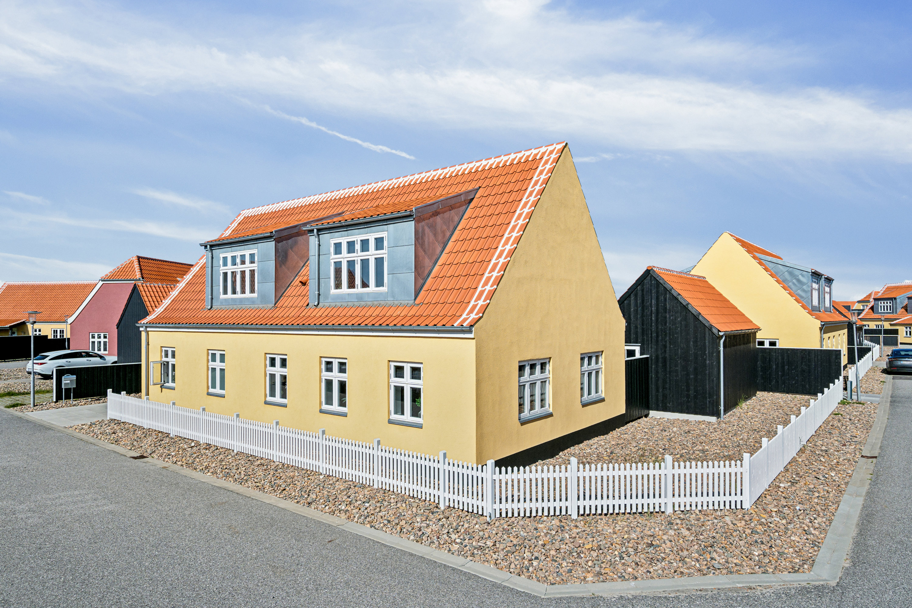 Skagenshuset er opført i klassisk stil med smukke arkitektoniske detaljer og lækre materialevalg. Grunden er anlagt med hyggelige opholdskroge og solrige uderum.