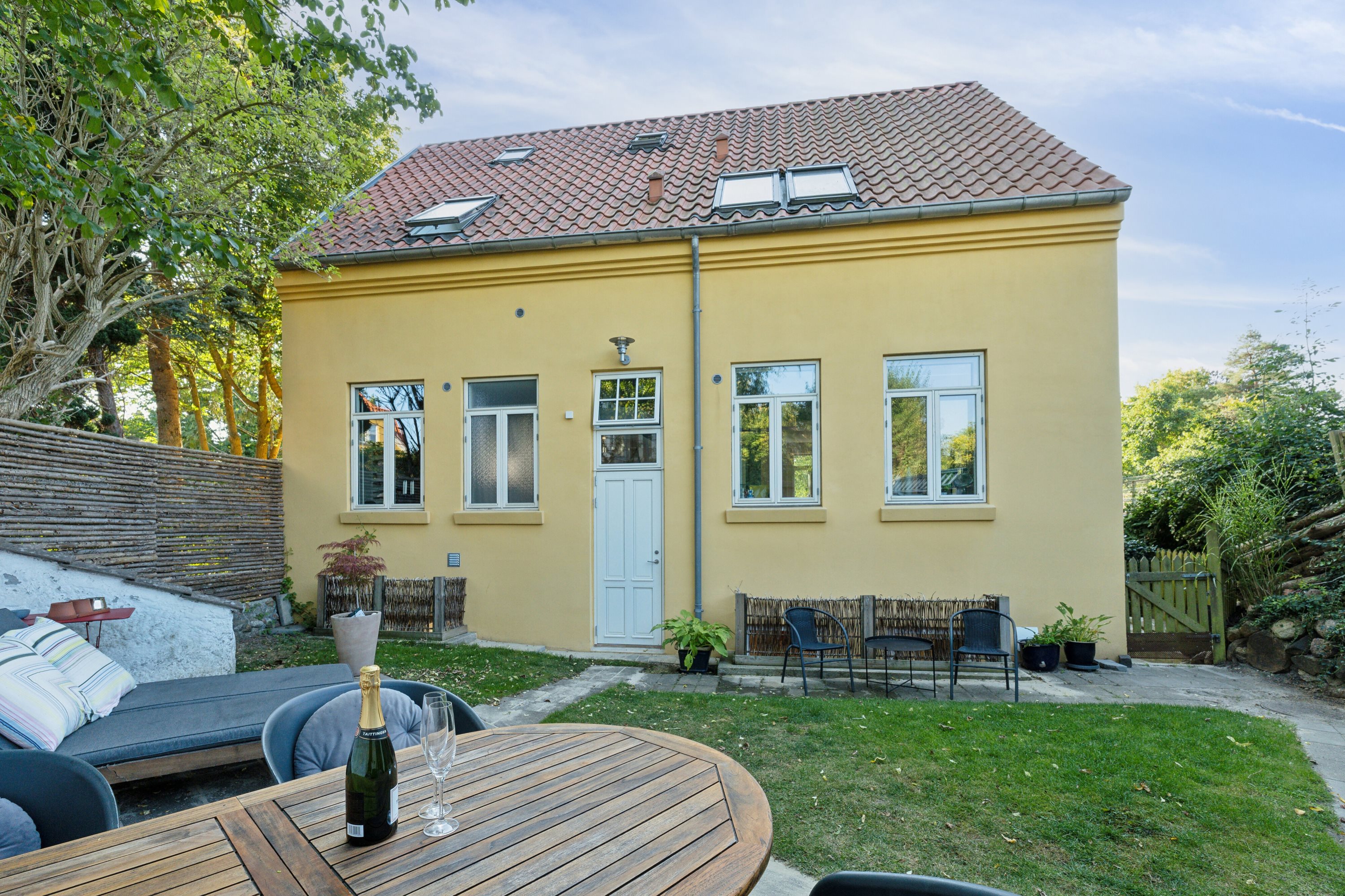 Bakkehuset rummer tre boligenheder, der har status som ideelle anparter. Enheden i gadeplan er liberalt erhverv (tidligere en blomsterbutik, i dag en frisørsalon). Første sal og anden sal er indrettet med to selvstændige lejligheder. Bag ejendommen har beboerne en solrig have, der er en fint afskærmet oase med grill og havemøbler på terrassemiljøet. Til den praktiske side bruger beboerne et fælles skur til opbevaring og cykelparkering. Placering på toppen af Bakkehuset er udnyttet til at åbne lejligheden til kip. Rumoplevelsen er vild og topper med knap fem meter til loftet i køkken, alrum og stue, der er samlet i et lækkert og gennemlyst opholdsmiljø. Placeringen på toppen er også udnyttet til at inddrage del af loftsetagen til en hems, der er velegnet som kontor, et ekstra stuerum og meget mere. Rumdelingen fuldendes af to værelser og et badeværelse, der byder på separat bruseniche og gulvvarme.